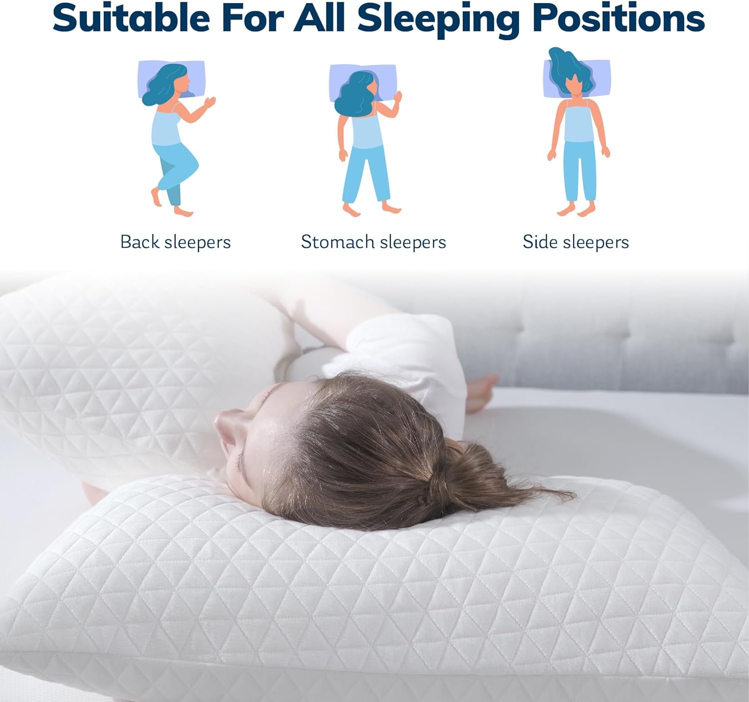 SUITABLE FOR ALL SLEEPING POSITIONS: The shredded memory foam pillow is designed to meet the different needs of stomach sleepers, back sleepers and side sleepers. Therefore, no matter what your sleeping position is, this pillow is suitable for you.