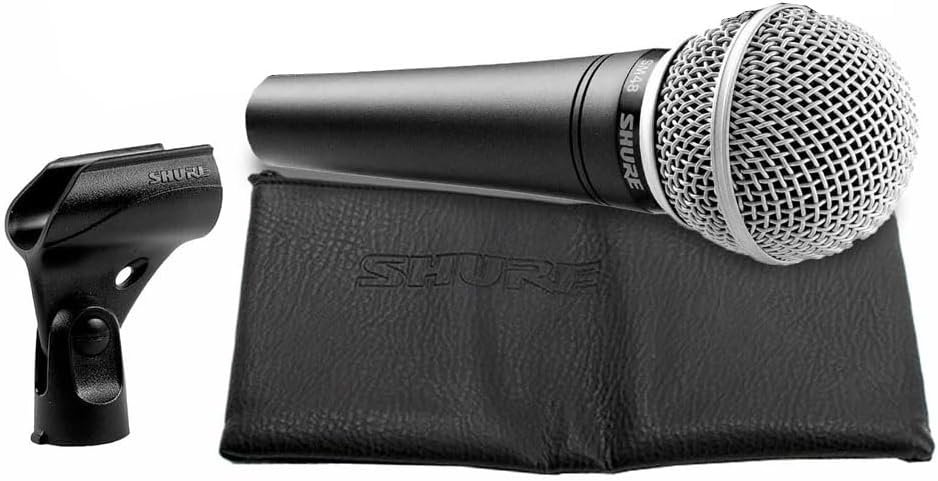 Shure SM48 Cardioid Dynamic Vocal Microphone with Shock-Mounted Cartridge, Steel Mesh Grille and Integral Pop Filter, A25D Mic Clip, Storage Bag, 3-pin XLR Connector, No Cable Included (SM48-LC)