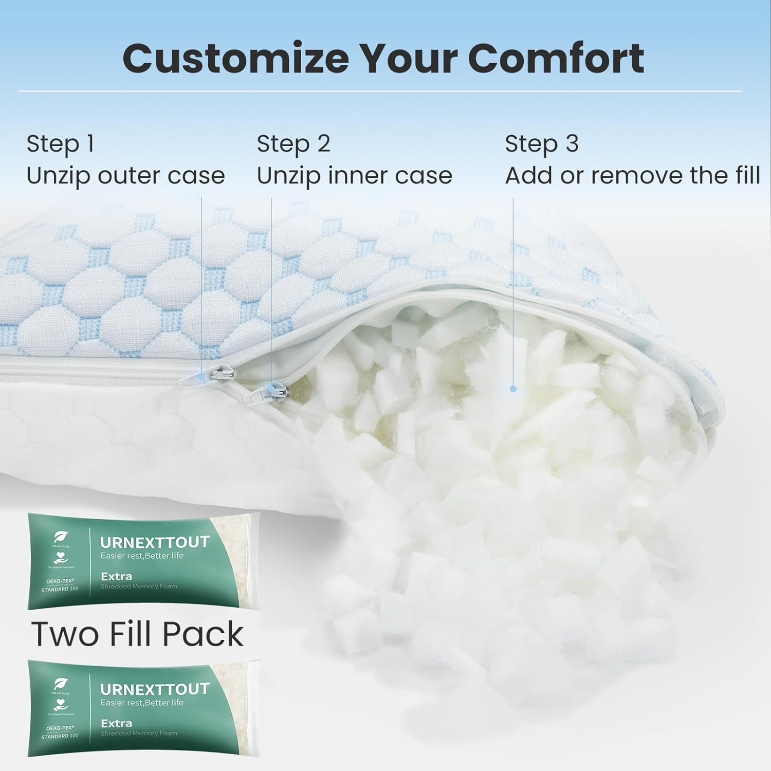 🌙Customizable Comfort: Experience personalized comfort with adjustable shredded memory foam, allowing you to customize the loft and firmness to suit your sleep preferences. Achieve optimal support and individualized comfort for a restful night’s sleep.