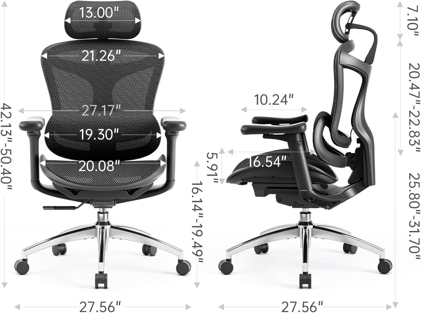 SIHOO Doro C300 ergonomic office chair new product is on sale, with multi-function adjustment to meet all your experience needs. New design Dynamic Tracking System with fully breathable mesh backrest design and flexible triangular frame, conforming to your back as you move your upper body from side to side. The backrest of the home high back office chair has a four-position adjustment, allowing for 6cm (2.36″) of up and down movement, making it suitable for individuals of varying heights. When adjusted to the highest position, it automatically returns to the lowest level.