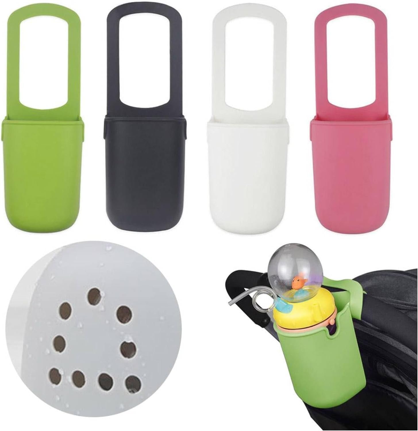 Silicone Stroller Cup Holder:Made from food grade silicone, this bottle holder is safe and durable. It can withstand everyday use and is resistant to deformation. The material is also easy to clean and maintain.