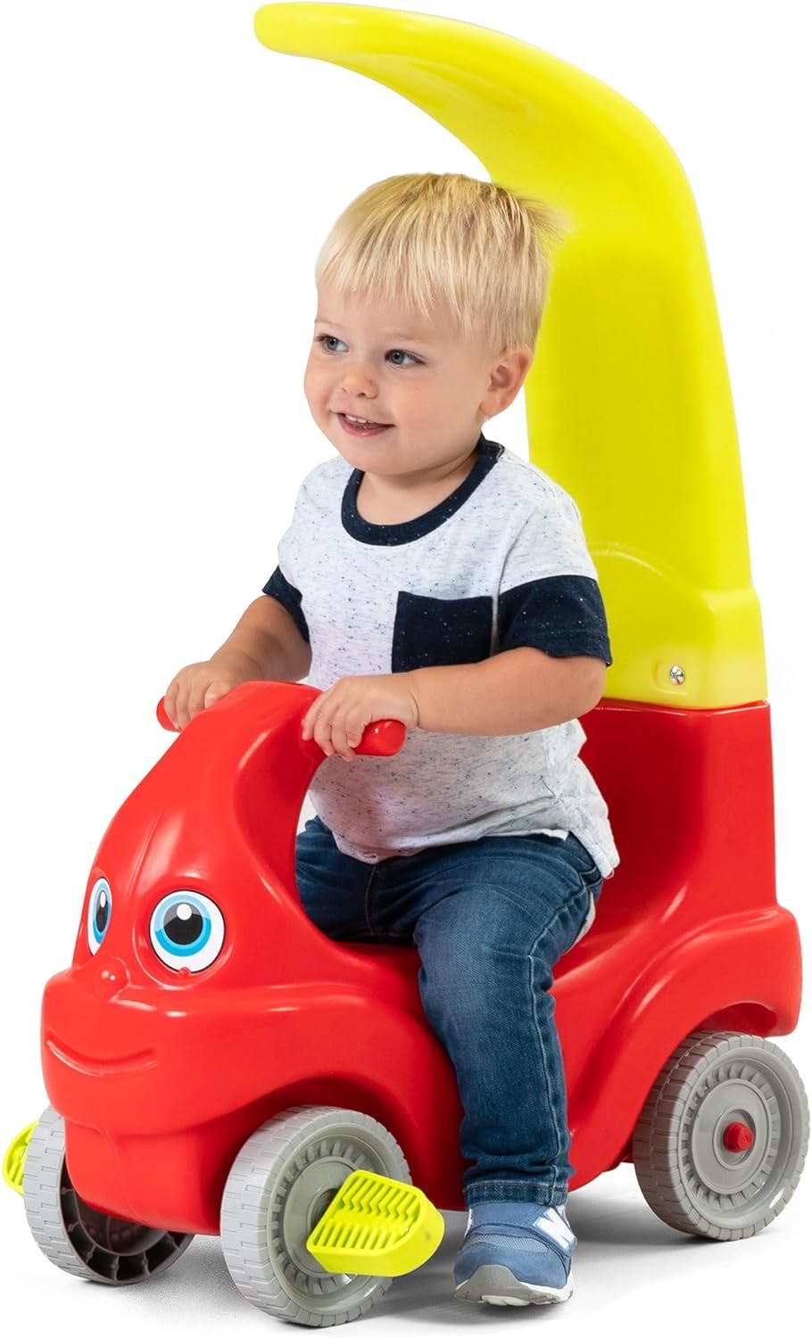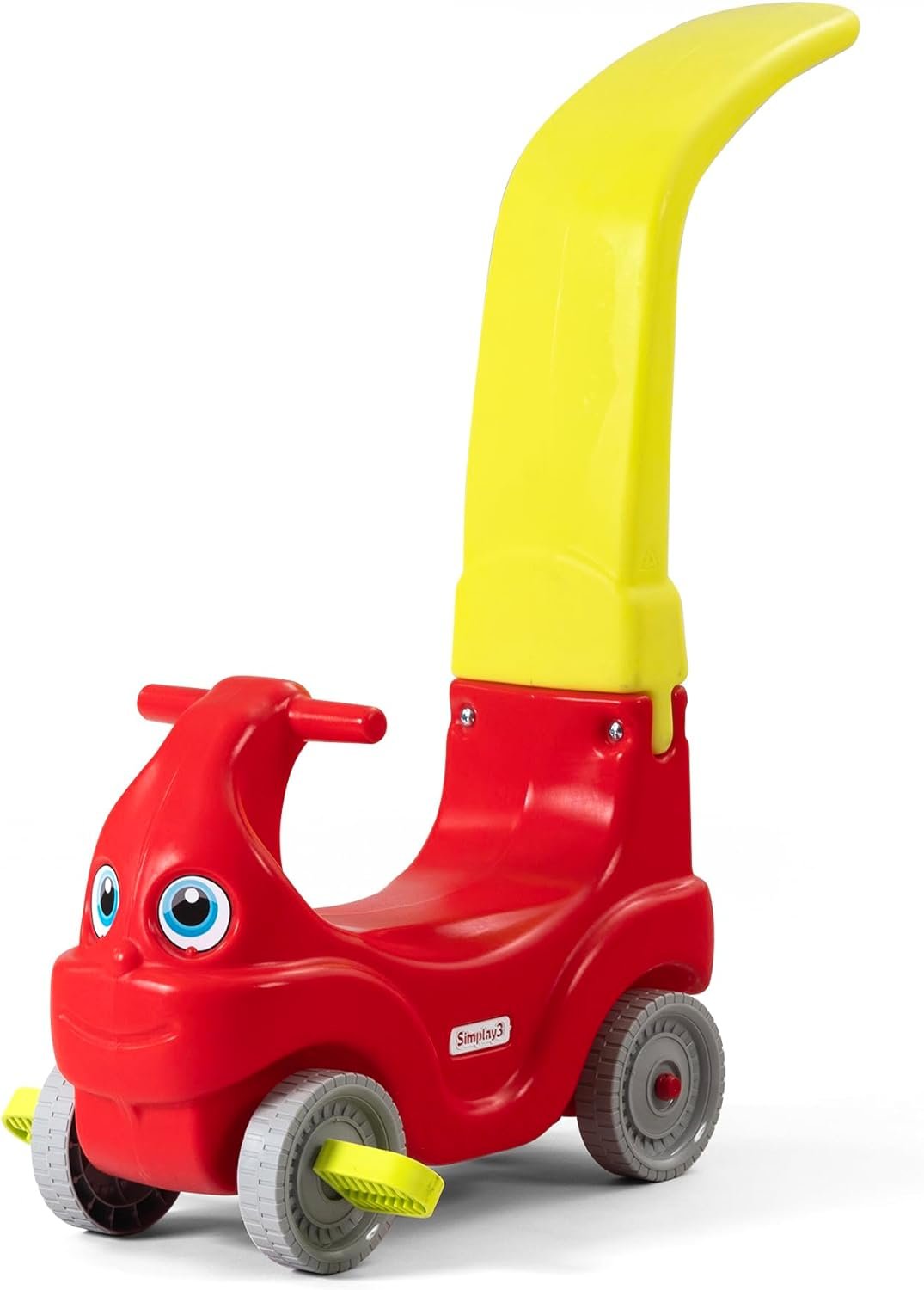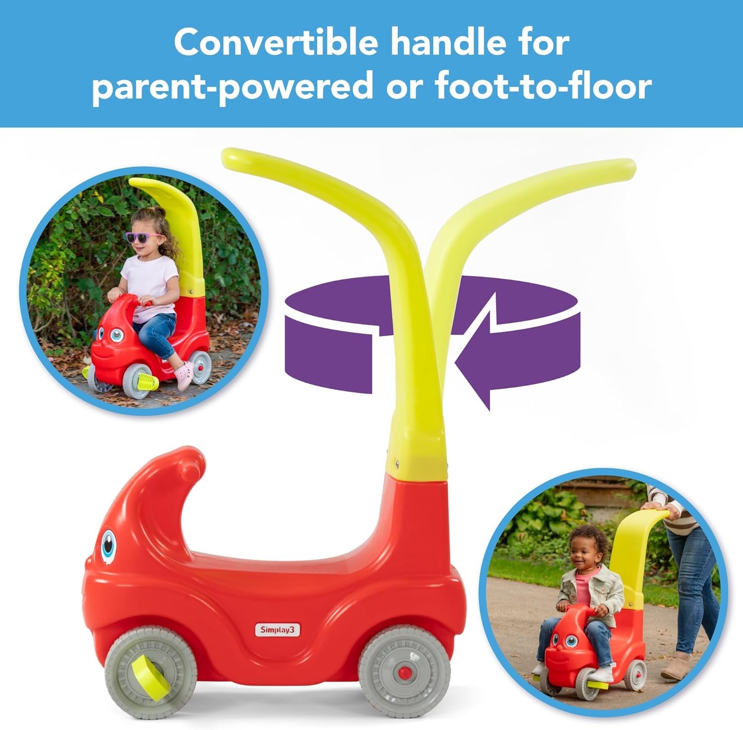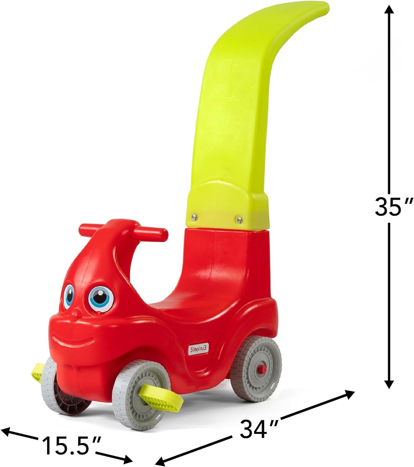 2 WAYS TO RIDE: Parents push car handle converts to turn this kids coupe into a toddler foot-powered ride-on car with roof