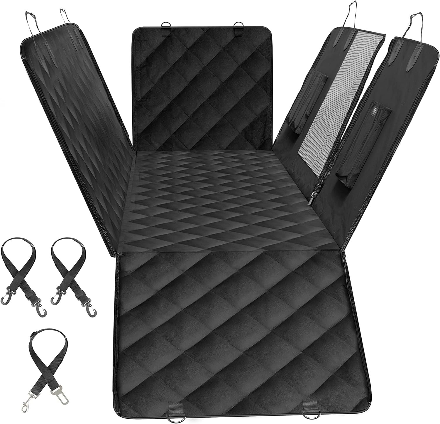 Waterproof & Durable: 600D Oxford fabric with water-resistant coating can protect your seat from wet paws. The side flaps ensure you don’t damage your seats or car doors while loading your pet in