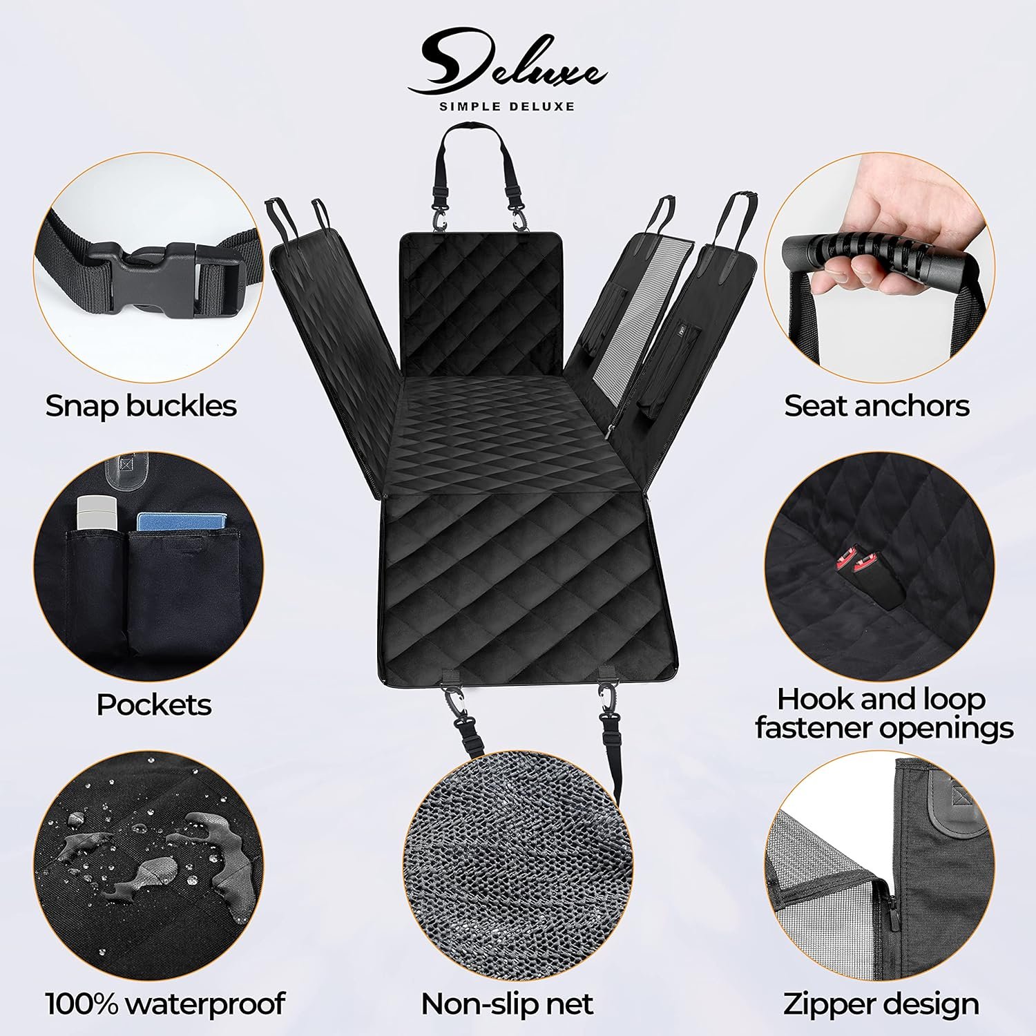 Simple Deluxe Dog Car Seat Cover for Back Seat, Waterproof Dog Car Hammock with Mesh Window, Scratchproof & Nonslip Seat Protector for Cars, Trucks, SUVs, X-Large