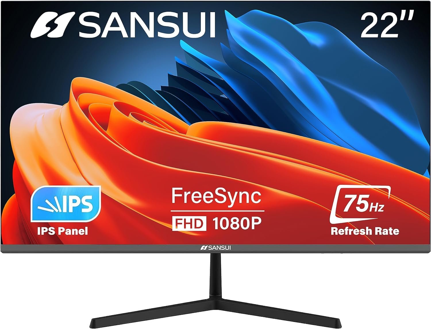 Simple Deluxe Monitor 22 Inch IPS 75Hz FHD 1080P HDMI VGA Ports Computer Monitor Ultra-Thin Tilt Adjustable VESA Mount Compatible with Eye Comfort 178° Wide Viewing Angle SANSUI (ES-22X3)
