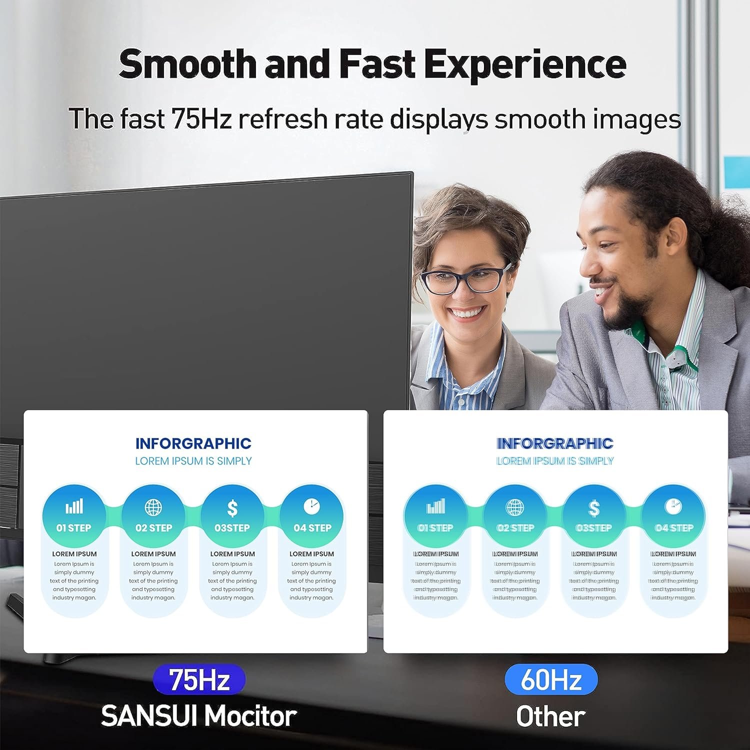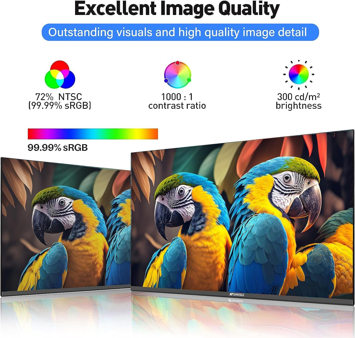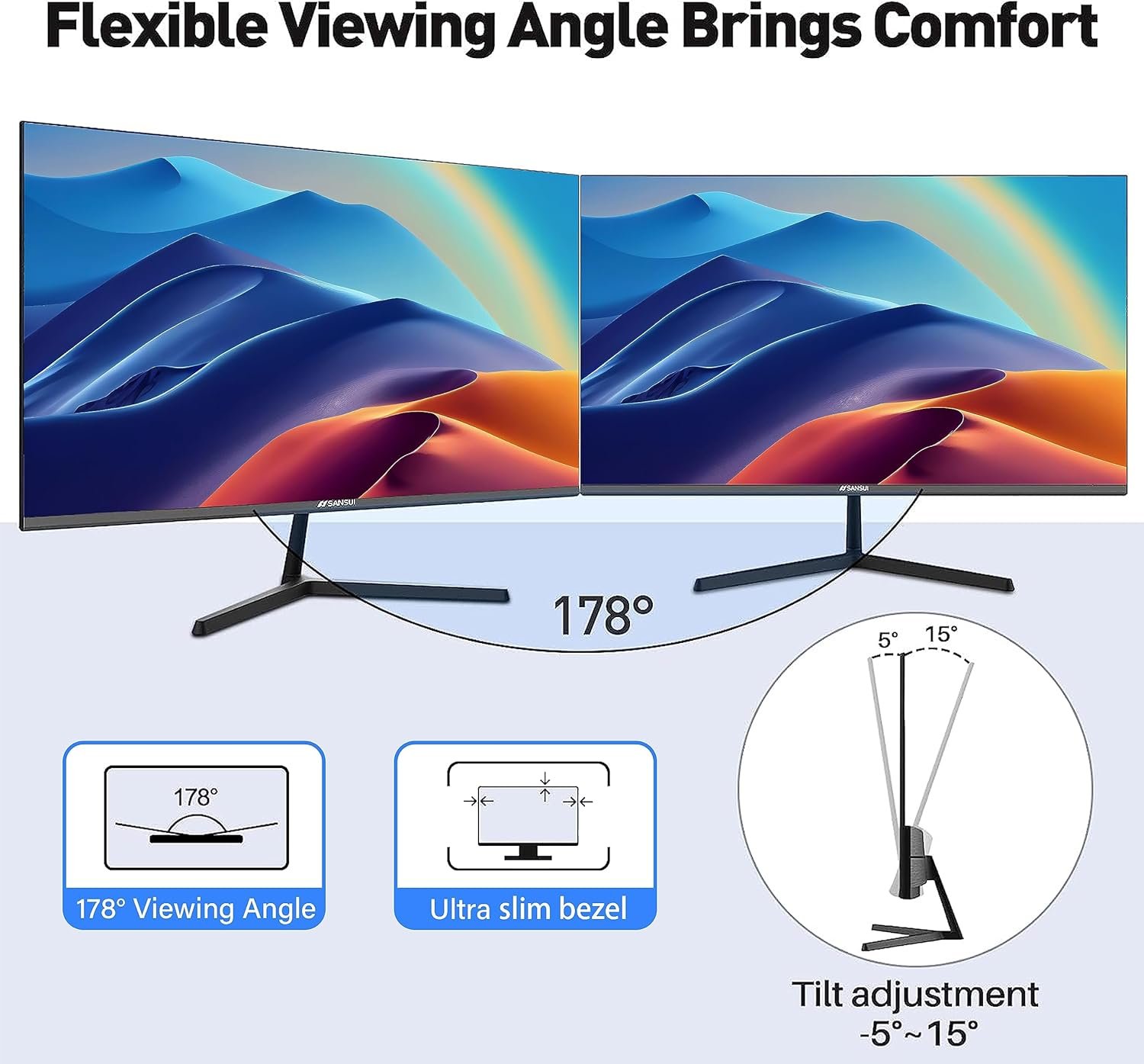 💻【HDMI & VGA Compatible】With HDMI cable can max the resolution to 1920*1080P at 76Hz and support Free Sync to reduce image tearing. VGA connection can swiftly display rich colors in dynamic scenes, like FPS/MOBA gaming, action movies, video meetings… making every action with no lags and blur. Via HDMI and DP ports can quickly connect to various devices, like PC, laptops, TV boxes, game consoles, etc. Whether working or gaming, the SANSUI monitor can be a great assistance.