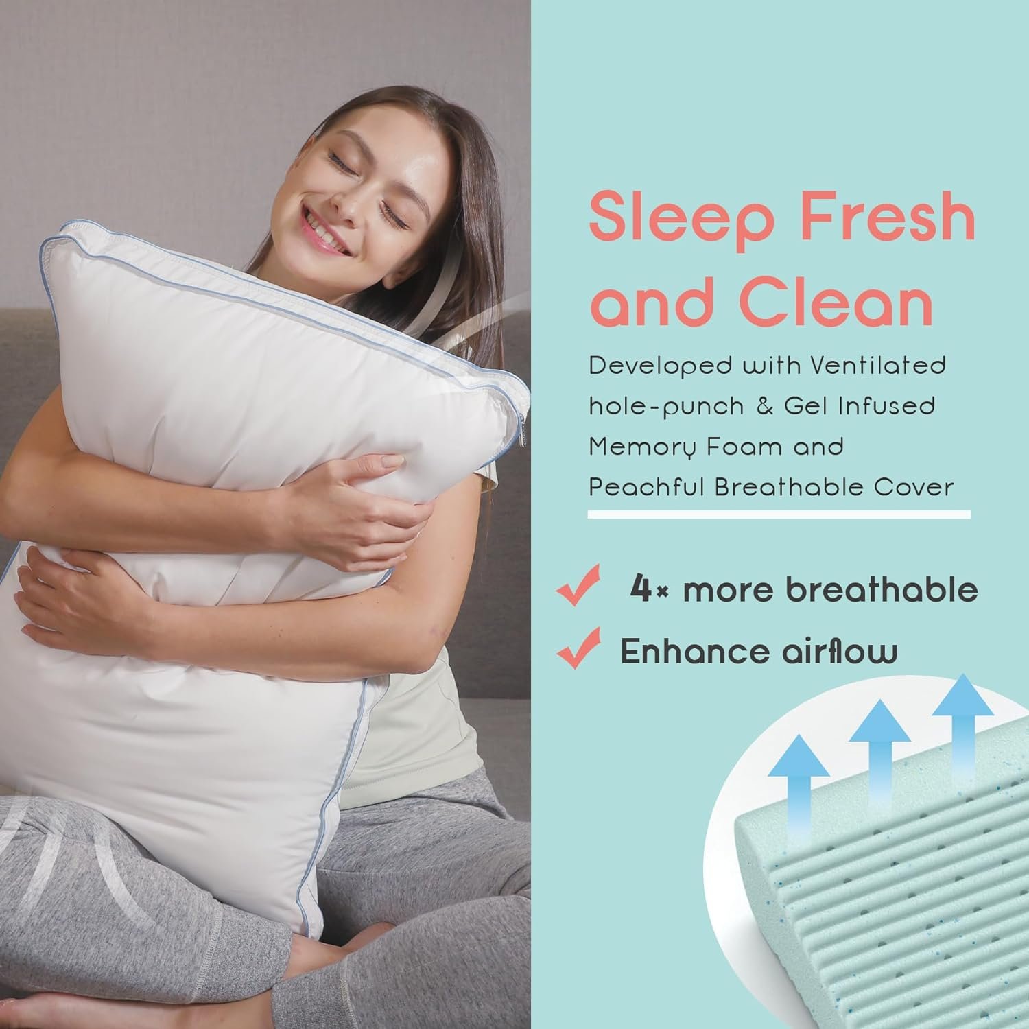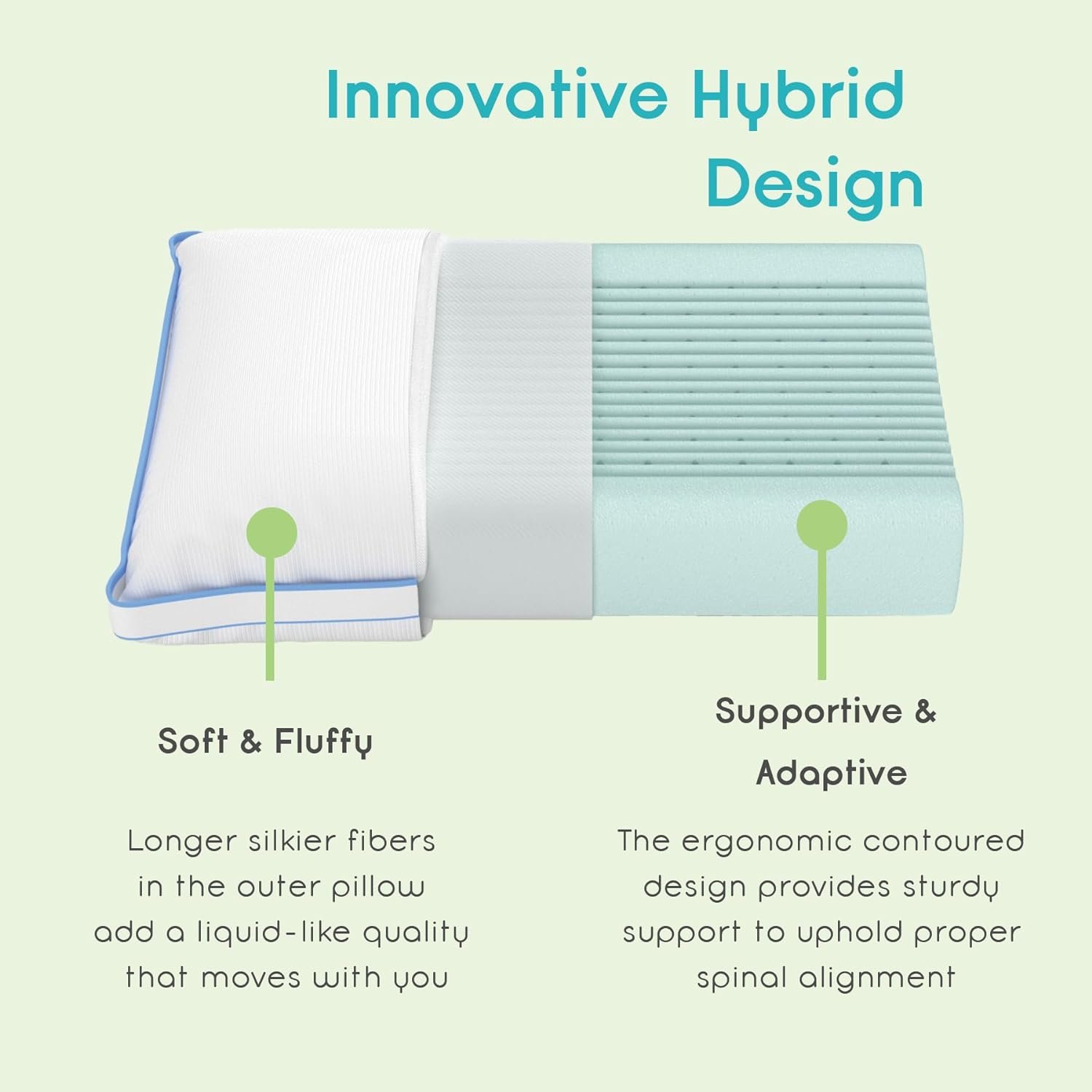BREATHABLE – Developed with ventilated hole-punch premium memory foam which makes it 6x more breathable than a typical pillow, the hybrid pillow dissipates heat and maintains the perfect temperature and proper air circulation.