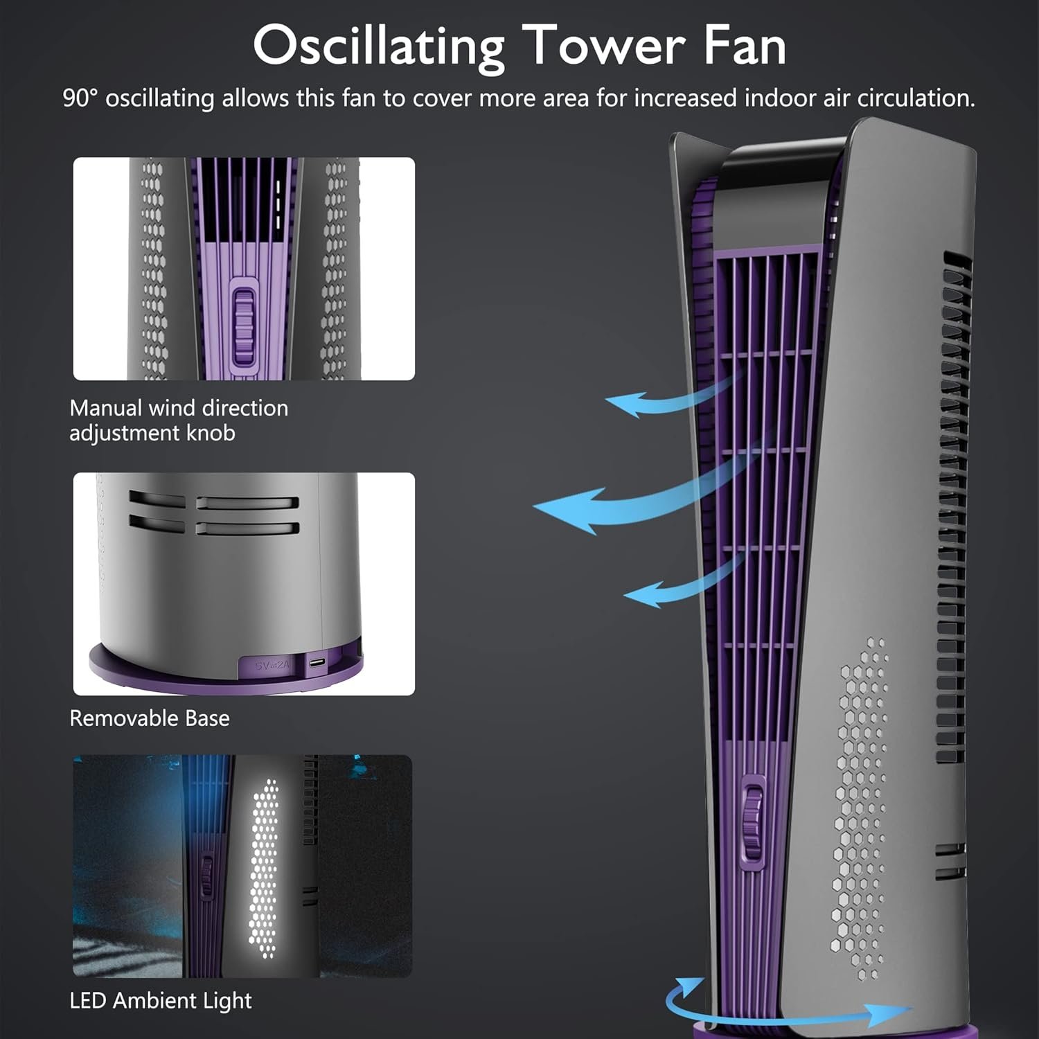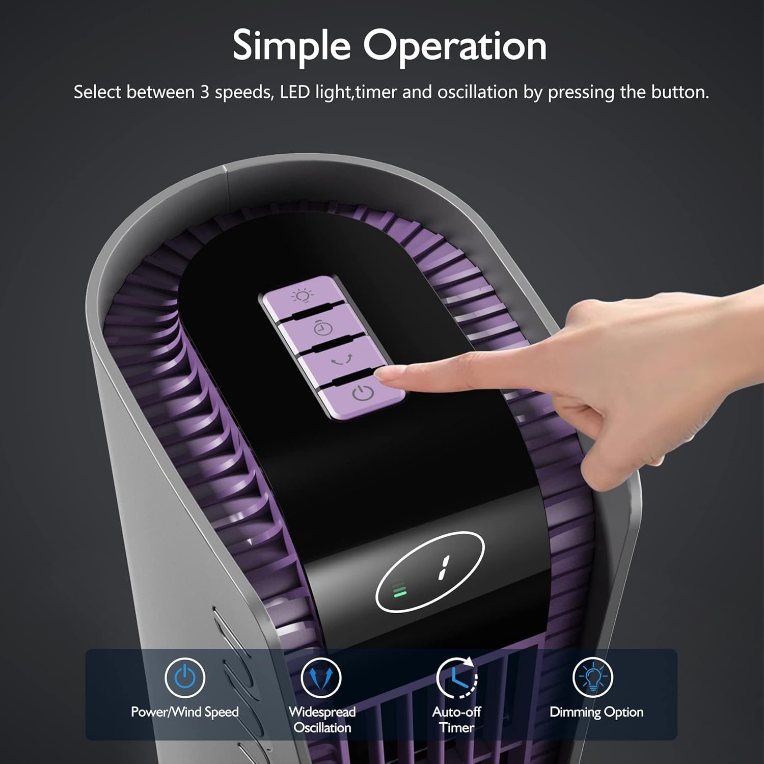 【Bladeless Tower Fan】The bladeless tower fan is designed with a narrow fence, so children and pets can play with the fan without supervision. The smart HD LED display clearly shows the ambient light, speed, timer, and oscillation. The 4-button control system is easy to operate for the elderly and kids.