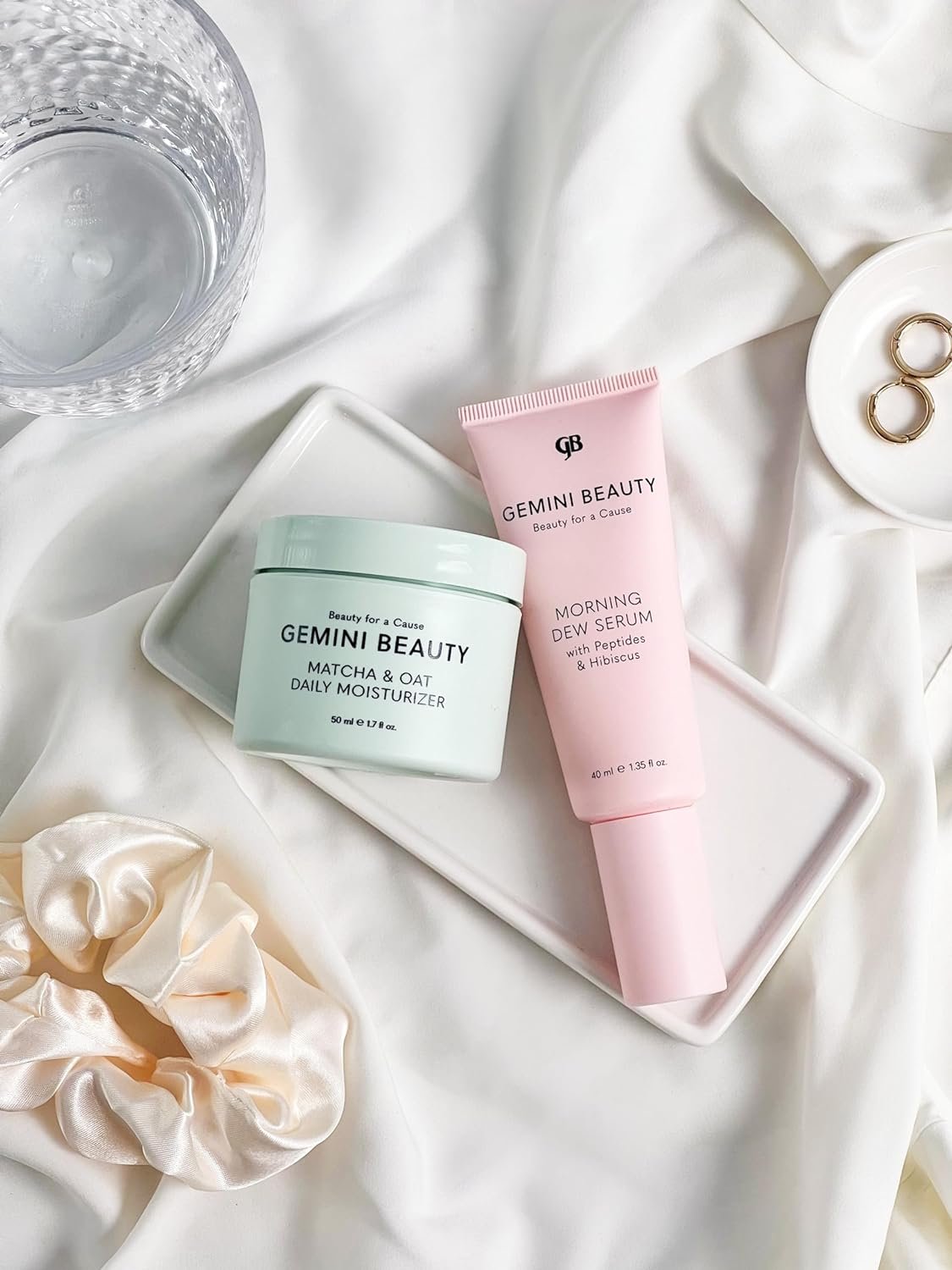 4 PIECE SET: The Gemini Beauty Skin Care Set is a comprehensive skincare package designed to provide a complete daily routine for healthier and more radiant skin. Inside this set, you’ll find our exquisite Morning Dew Serum, accompanied by both morning and night moisturizers, as well as a daily moisturizer.
