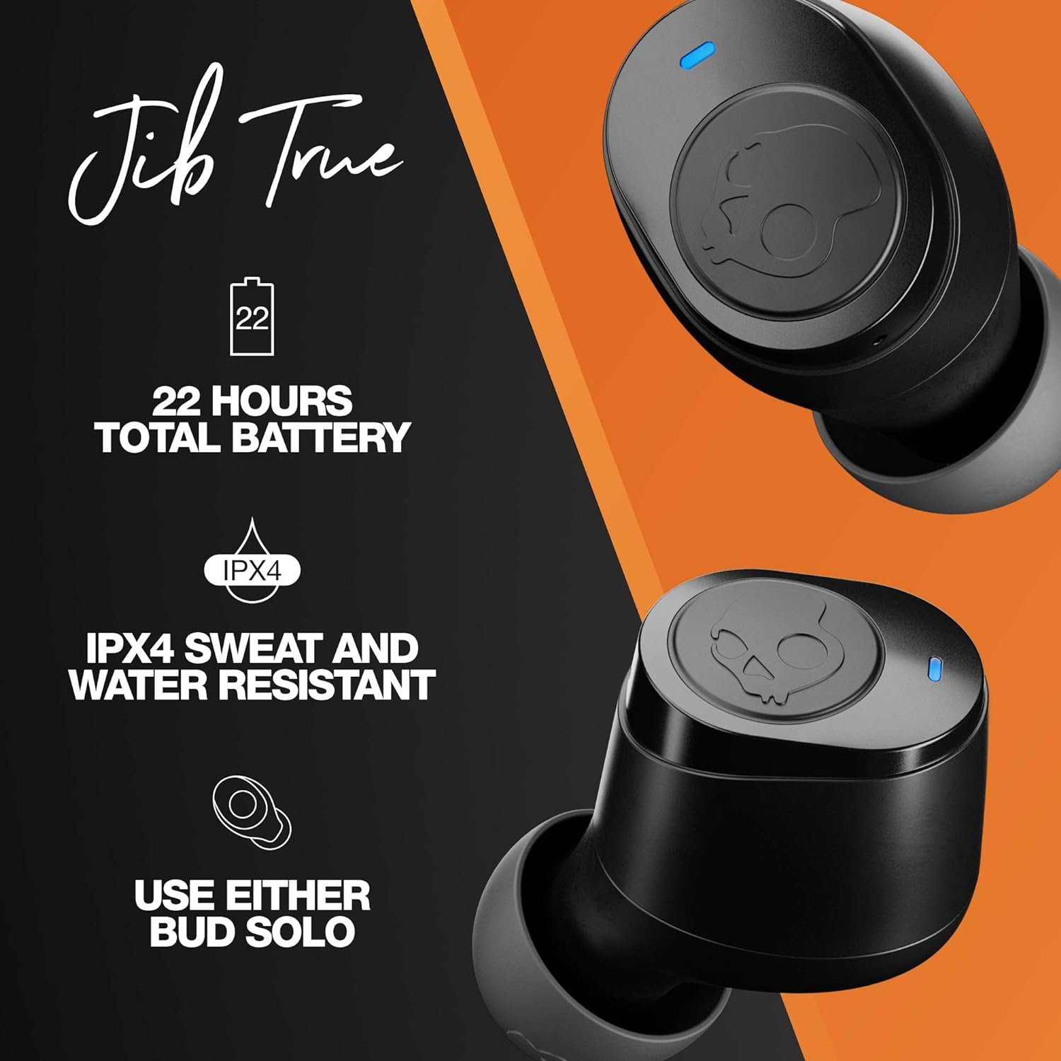 Experience total freedom on a budget with Jib True. The newest true wireless earbud from Skullcandy is easy to connect and easy to enjoy. Call, track change, and volume controls are all within close reach through one main button. 22 hours of audio on a single charge means you spend less time recharging and more time enjoying your music. Jib True earbuds are adventure-ready, too. An IPX4 rating means Jib True is sweat- and dust-resistant. You don’t need to worry about damage if a little rain kicks up during your urban or outdoor adventure. Dual microphones make your calls more clear and if you feel like keeping one ear open, you can use either bud ‘solo’ without missing a beat.