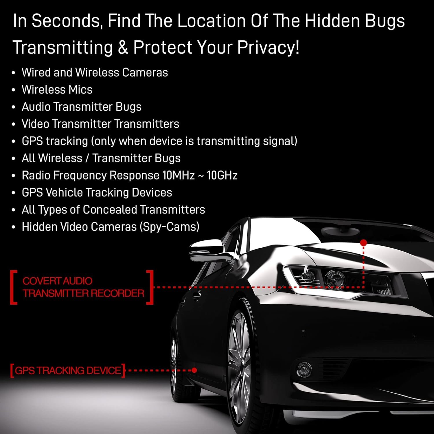 PROTECT YOUR PRIVACY: The Maxi-Tech bug detector can help protect your privacy from those who wish to take away your sense of security. The detector can scan your vehicle for GPS transmitters, which will help to keep your location a secret. The built-in hidden camera detector can also be used to sweep your home or office for wired or wireless cameras. Additionally, the Maxi-Tech can track GSM transmitters, any active wireless radio frequency and audio bugs.