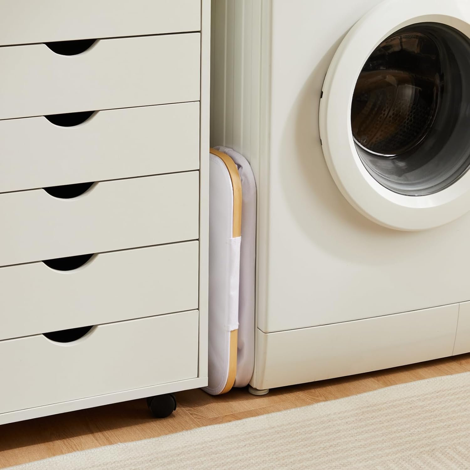 【Collapsible Laundry Hamper】This dirty clothes basket features a sturdy framework comprised of four supporting rods, it can be easily assembled, and when not in use you can fold it away. When folded, it measures just 1.7” high, making it incredibly compact and effortless to carry and store. Whether you have limited space in your home, or you frequently travel and require a portable laundry storage solution, our narrow storage basket is the perfect choice.