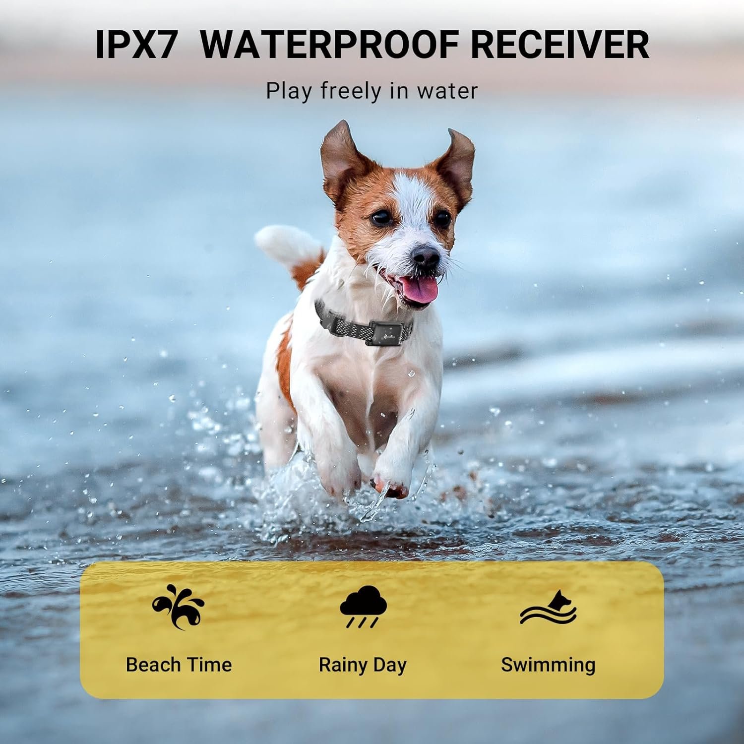 IPX7 Waterproof Receiver: This dog shocking collar with remote features IPX7 waterproof, which is convenient for dogs playing freely by the pool or in the rain. This ecollar dog training collar with a IPX5 waterproof remote control is portable when you are enjoying time with your furry pal. Shock collar for small dogs 10-15 pounds.