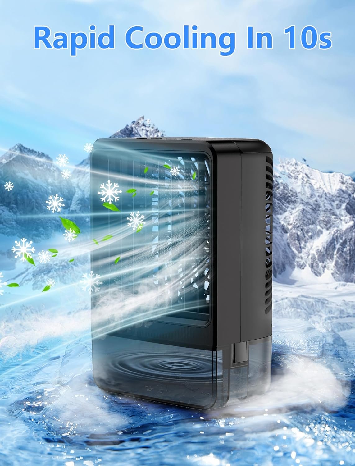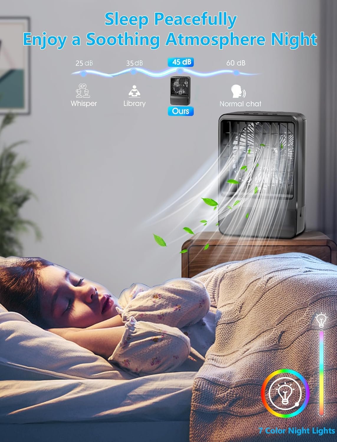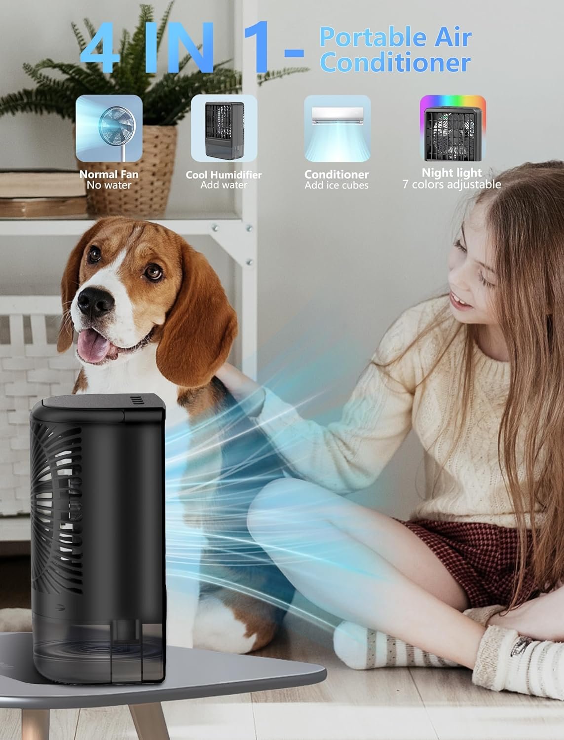 ❄【4 in 1 Mini Air Conditioning Fan】Orvina Mini air conditioning set ordinary fan (no water and no ice), humidifier (with water), portable air conditioning (with ice and water), night light in one, four major functions. Add ice water and ice cubes to cool small areas of hot, dry air. No installation required, no internal battery.