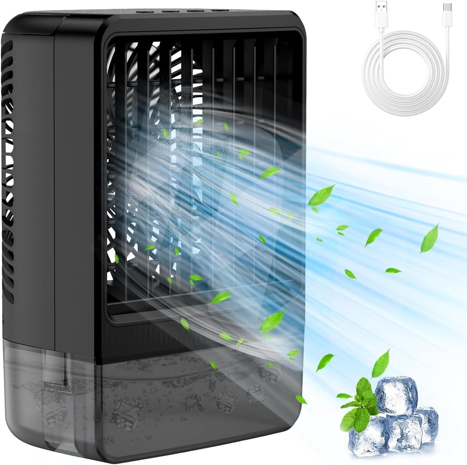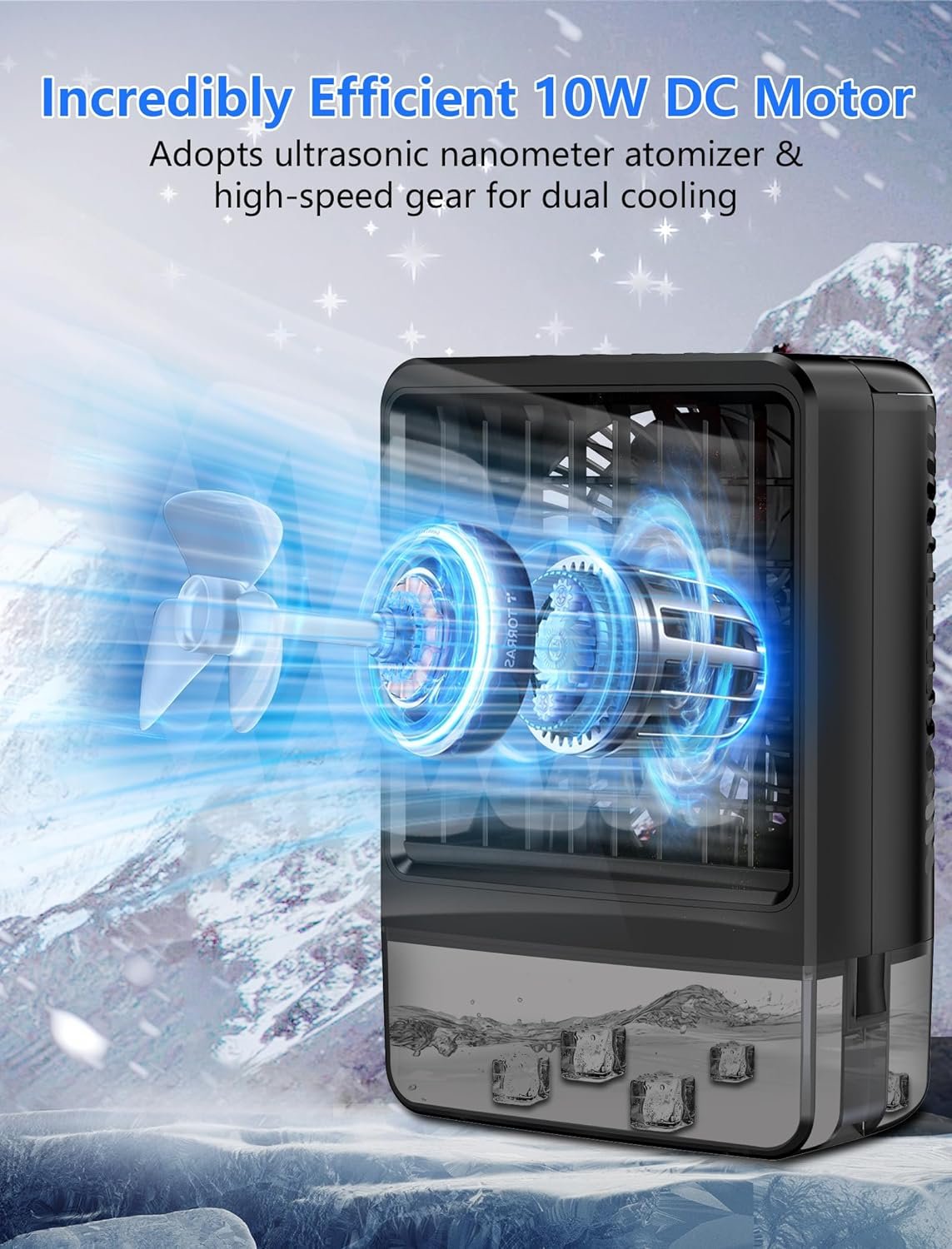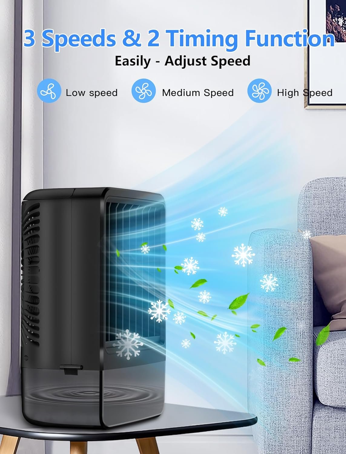 ❄【4 in 1 Mini Air Conditioning Fan】Orvina Mini air conditioning set ordinary fan (no water and no ice), humidifier (with water), portable air conditioning (with ice and water), night light in one, four major functions. Add ice water and ice cubes to cool small areas of hot, dry air. No installation required, no internal battery.