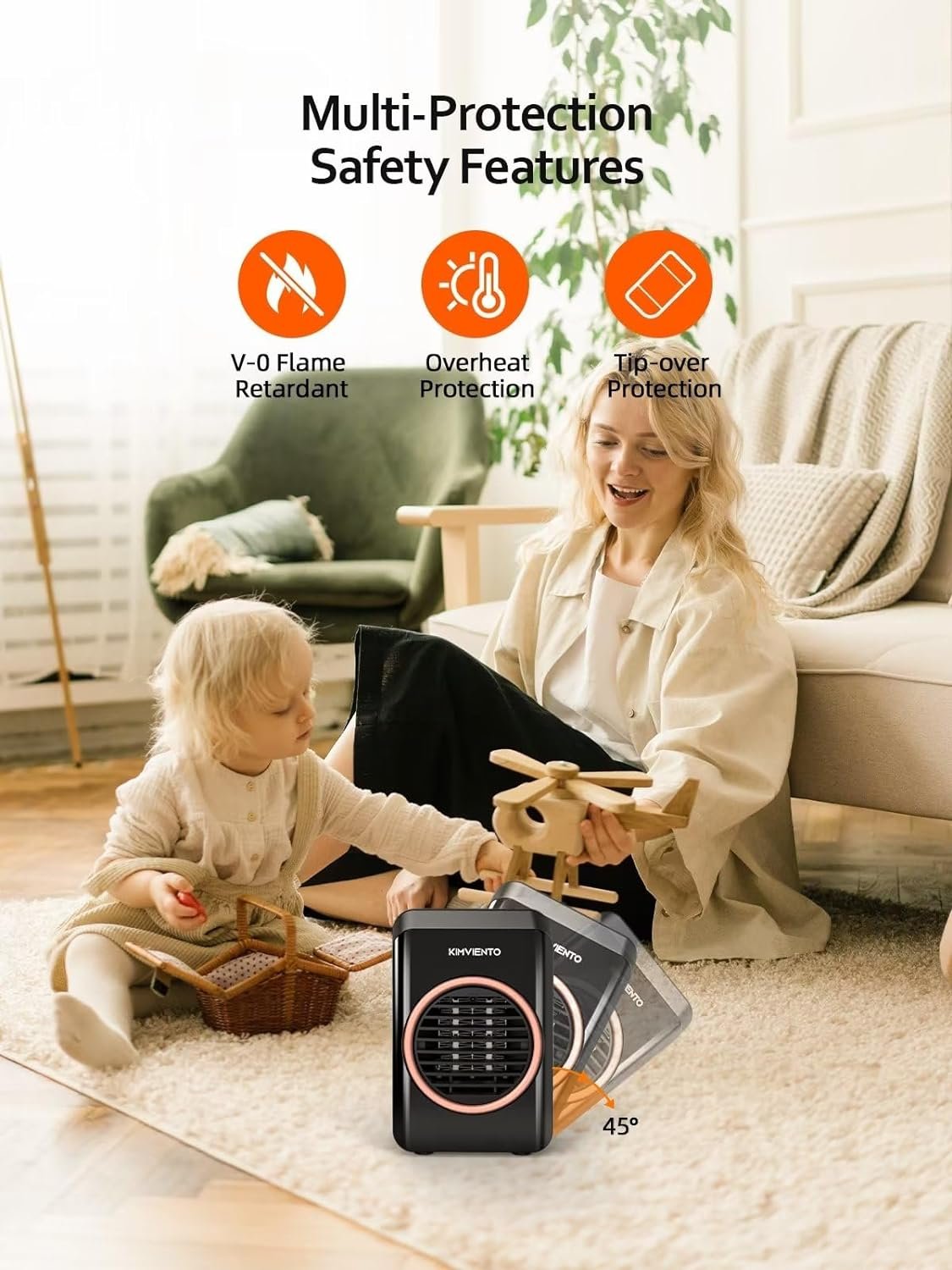Safe and Reliable: The mini space heater has an intelligent design that automatically shuts off when overheating and tipping over, avoiding the risk of fire and always keeping your home safe.