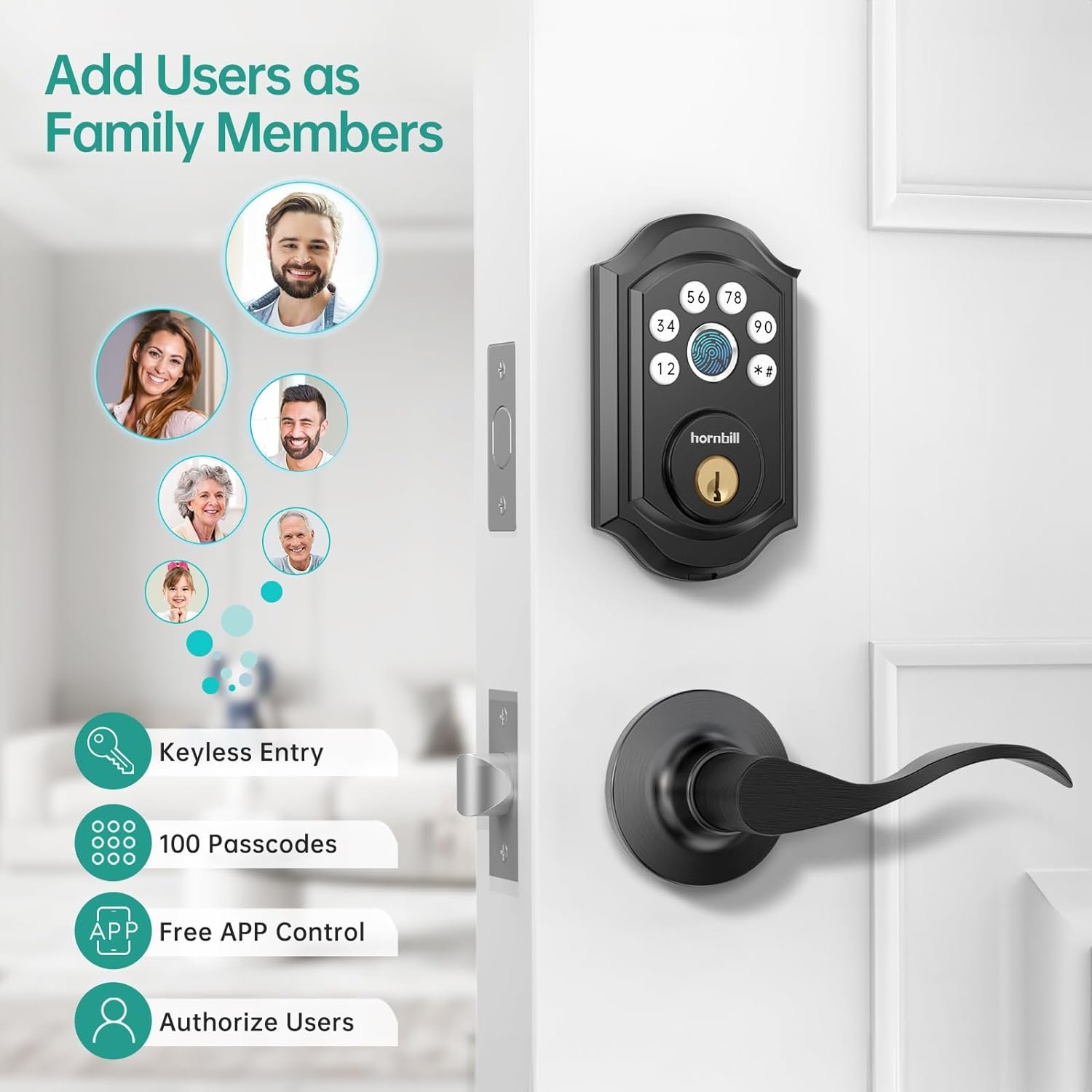 Easy Installation: The fingerprint door lock is easy to install in minutes with just a screwdriver, no drilling required and no need to hire a locksmith. Compatible with US standard left and right handed doors. The door thickness is from 1.49 inches to 1.88 inches and App is free to use forever.