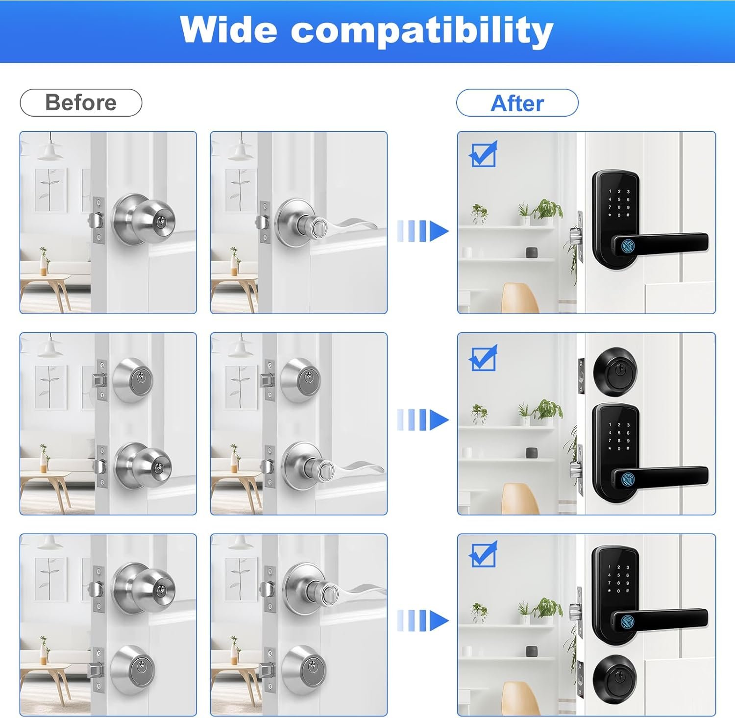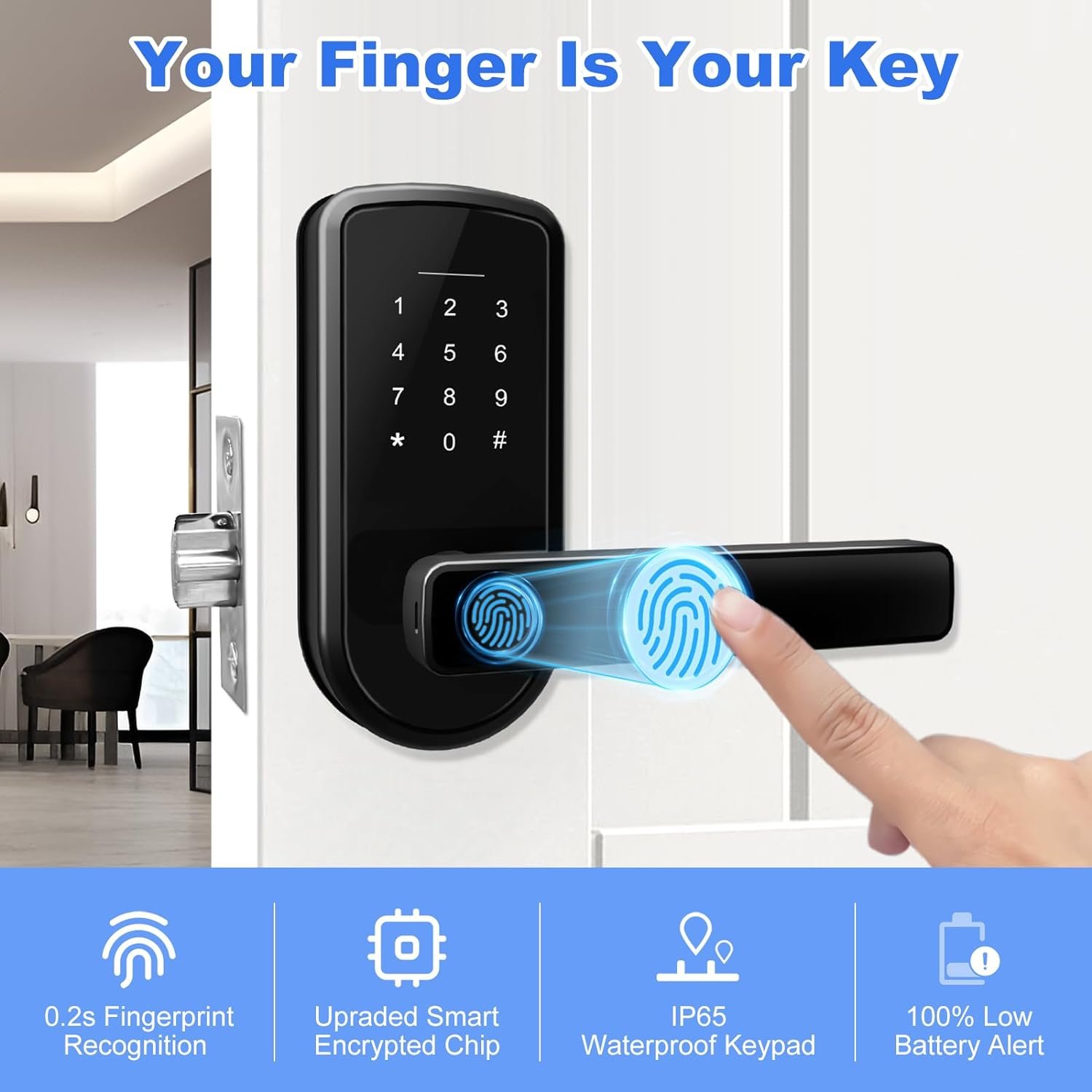 Satisfaction Service: Our Fingerprint Door Lock come with complete accessories and manuals.keypad door lock with handle offers 30 day-free return policy, a one-year warranty period and lifetime after-sales customer service. Any questions please feel free to contact us.