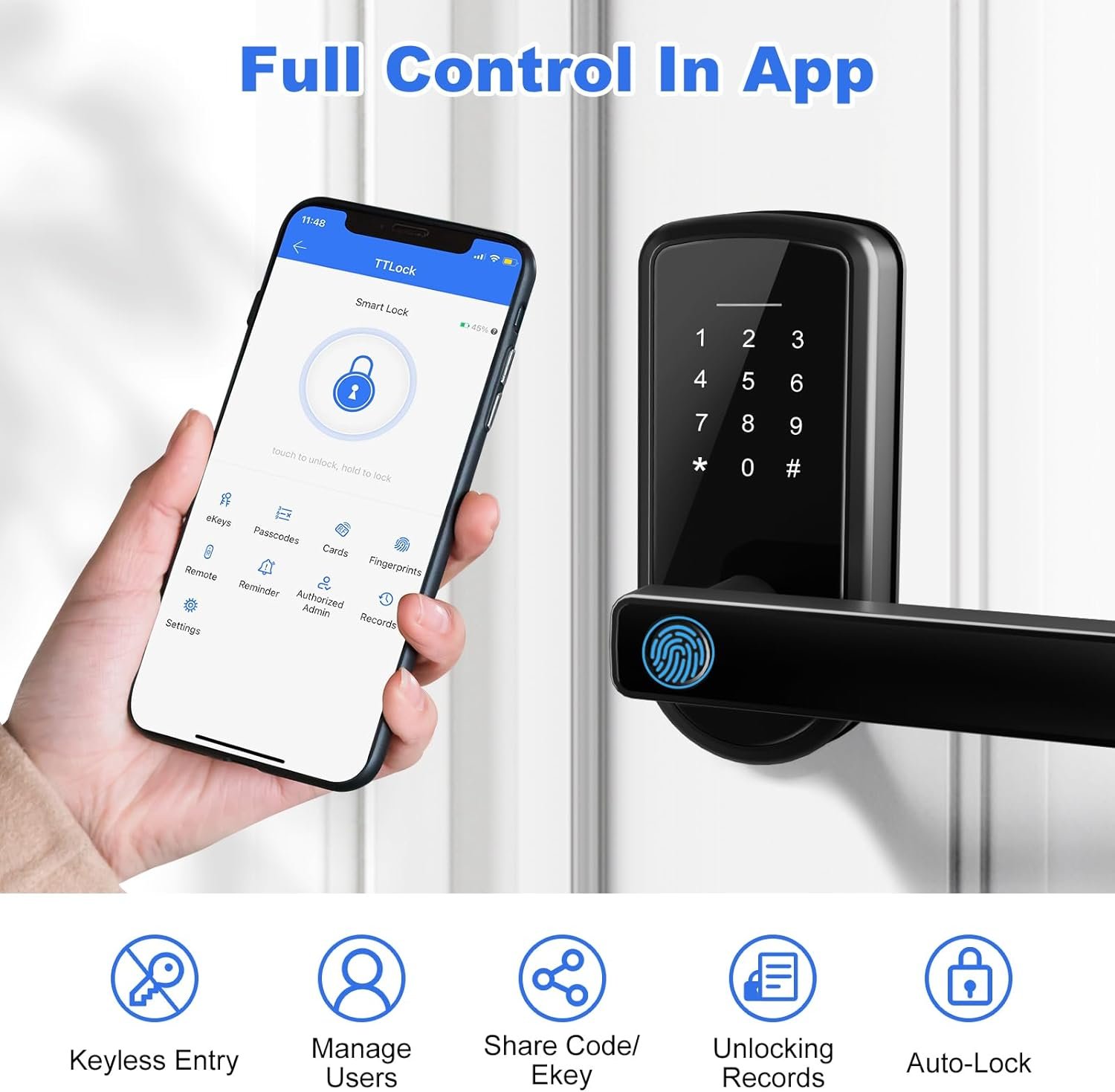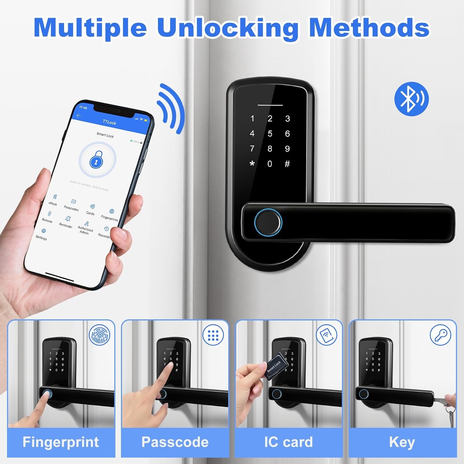 Multiple Unlocking Methods: Our Smart Deadbolt with multiple unlocking methods, Keypad Code+Fingerprint+APP Bluetooth Control+IC Card+ Key+Authorization One-Time Code; Our IP65 waterproof smart door lock replaces code door locks,fingerprint door locks, traditional locks, Never worry about being locked out again.