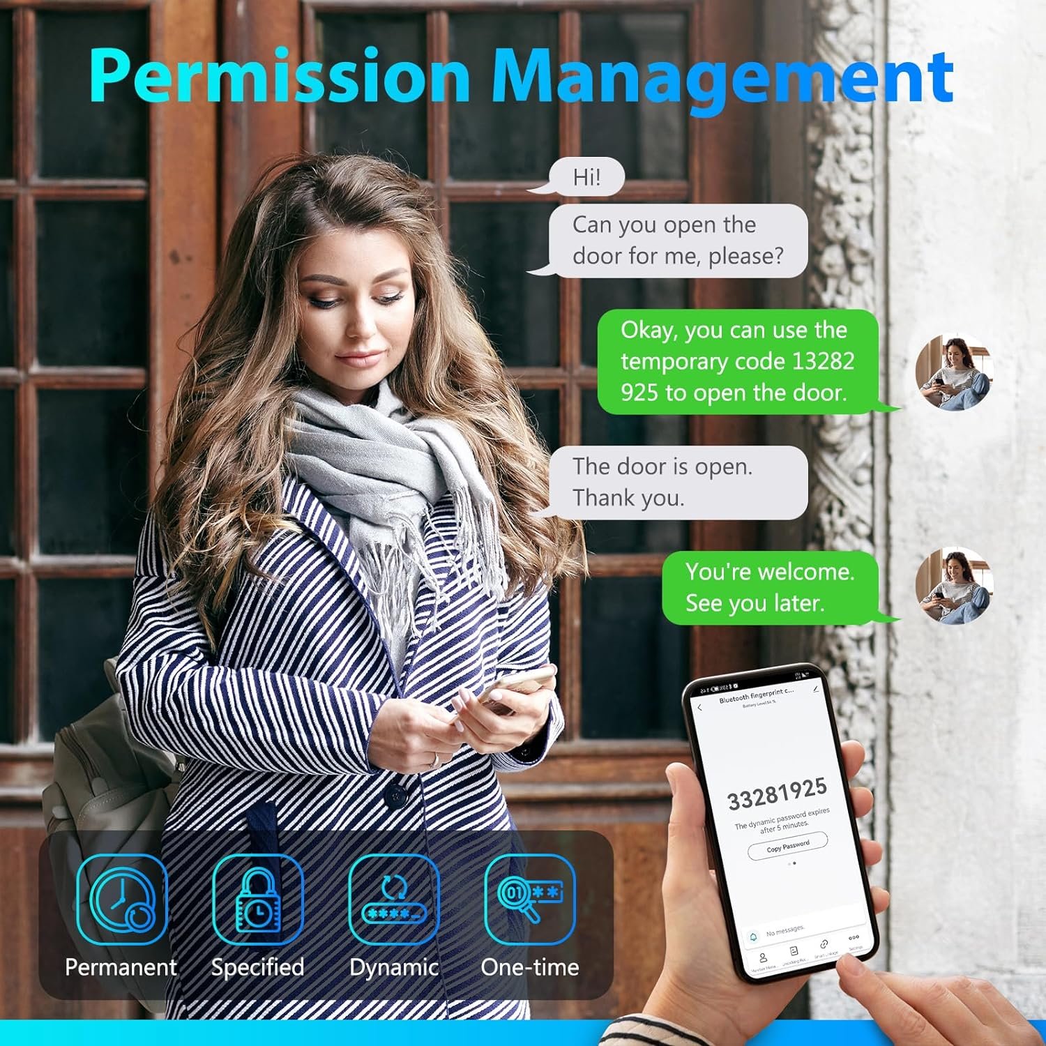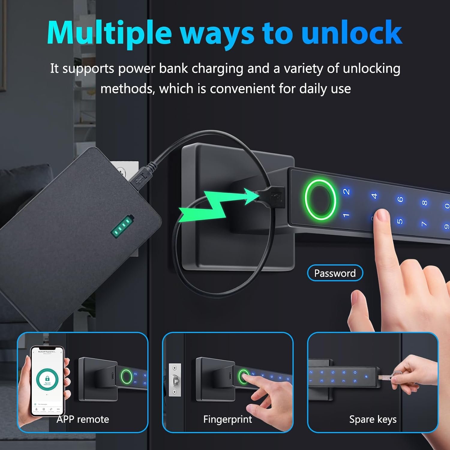 Smart App for Unlocking & Control:With the Tuya smart app, which is free and easy download from Google play or App Store,you can unlock the door within 5secs, set the permission or set the temporary passwords for others,and check the real time unlocking record there.Suitable for home,hotel, Airbnb, garage and other places.