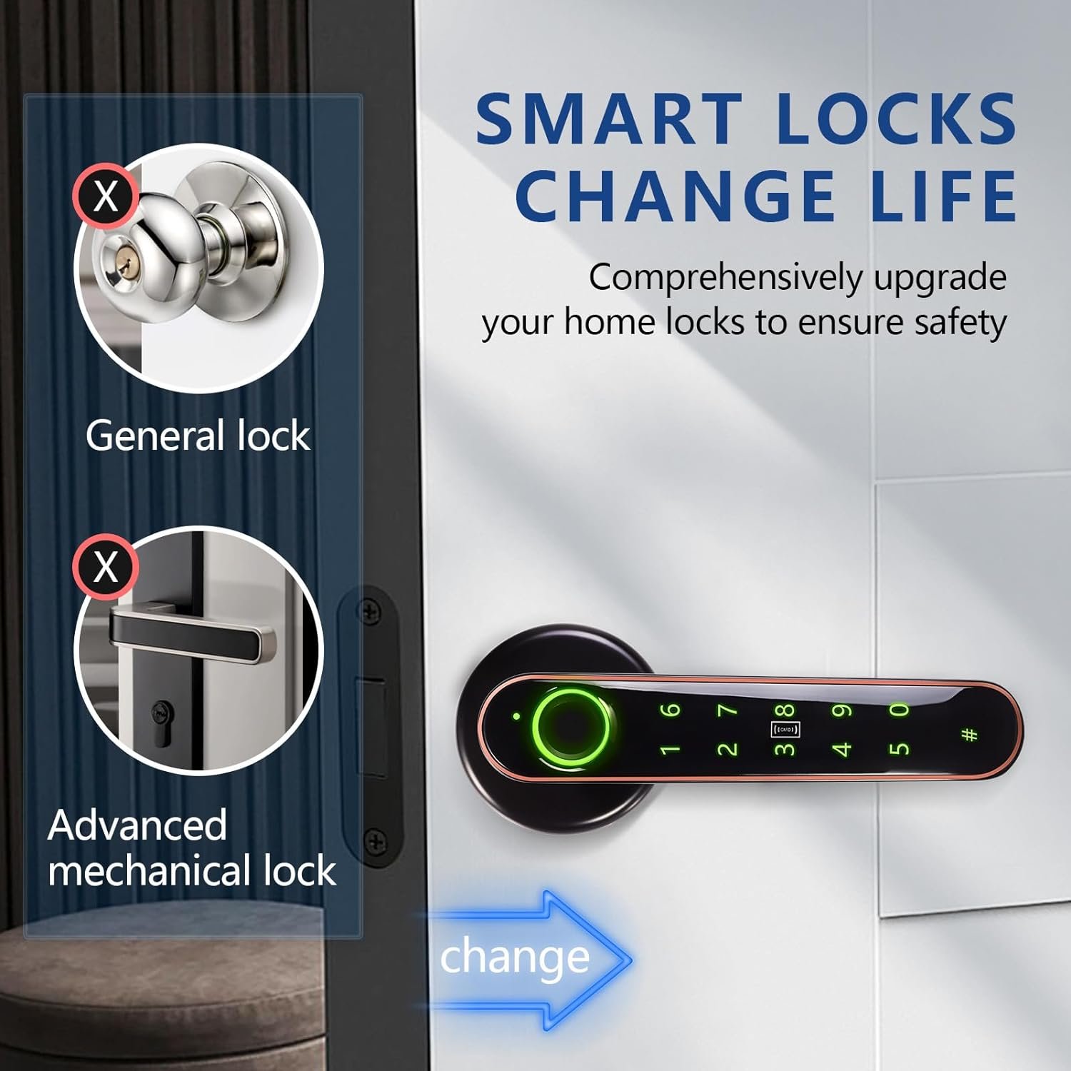 5 Ways to Unlock: Smart APP/Fingerprint/IC Cards/Password/Backup Keys 5 different methods to open this electronic biometric deadbolt. Use a code, a physical key, IC Card, even bluetooth and wireless app.