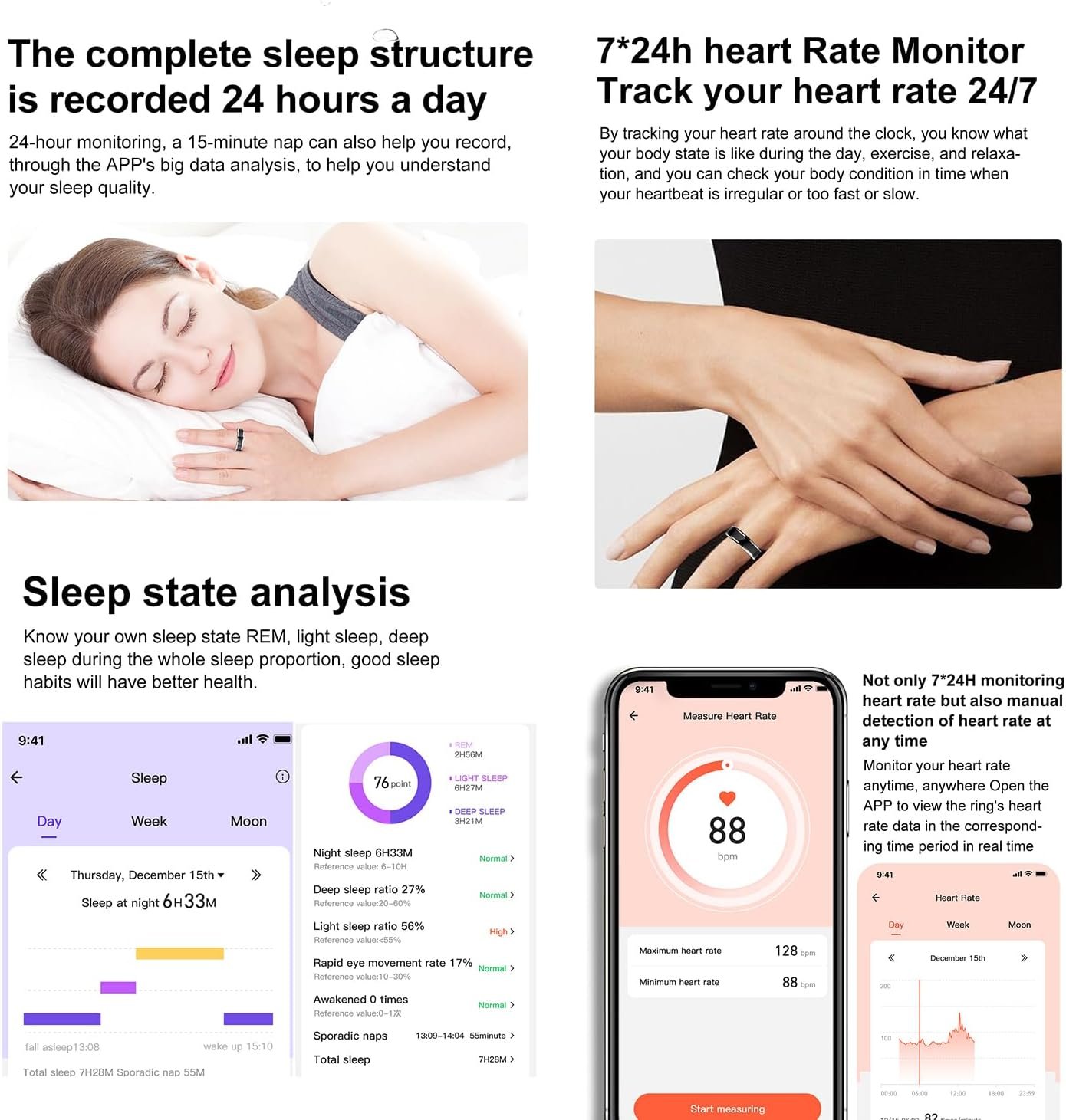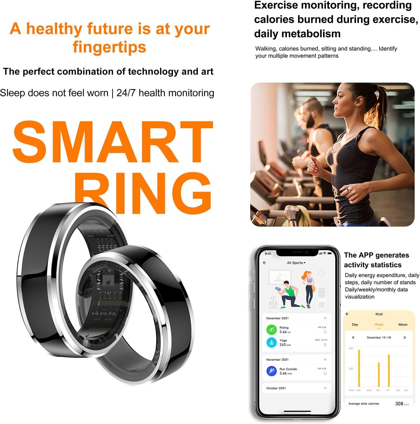 Be the first to review “Smart Health Ring for Fitness Sleep Tracking, 24-Hour Heart Rate Monitoring, Blood Oxygen Tracking, somatosensory Sports Games, 5ATM Waterproof Rating, Free APP (# 8), Diameter 18.7 mm, Black”