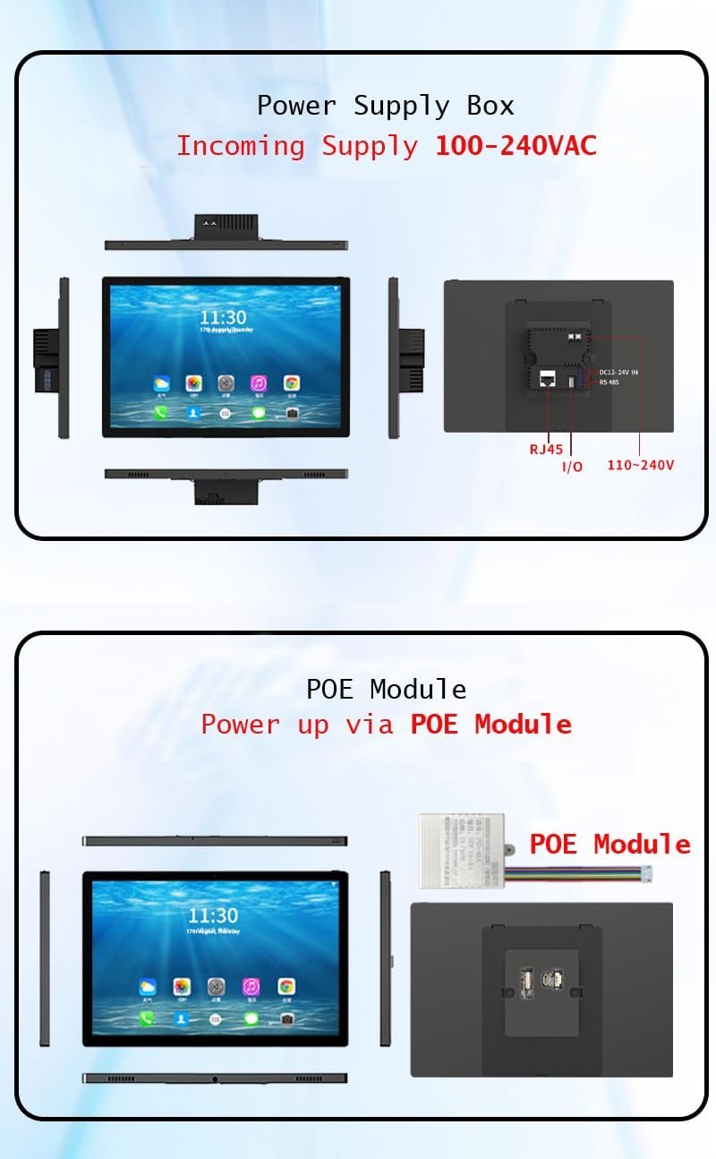Smart Home 10″ Touch Panel, Android 10 (POE Version). Compatible with Home Assistant, FullyKiosk, Wall Panel app. Suitable to Mount in 86 Type Electrical Box. Flush Wall Mounted Touch Panel.