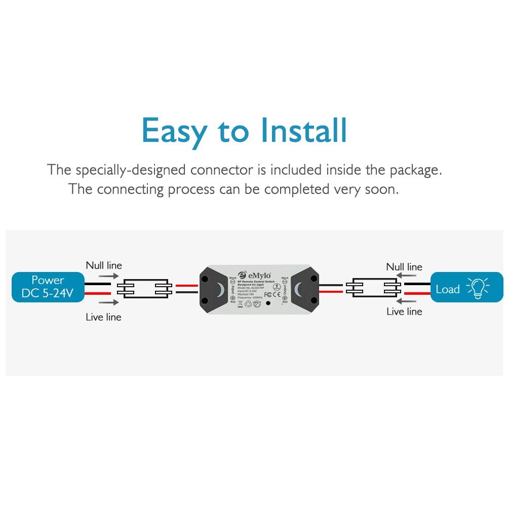 ♥ More Flexibility & Widely Application: eMylo RF Relay Switch adopts non-directional wireless encoding technology, allowing independent control without mutual interference, can be used in industrial control and security fields, such as light, motor, remote controller, wireless security alarm, wireless door alarm, wireless controller, etc.