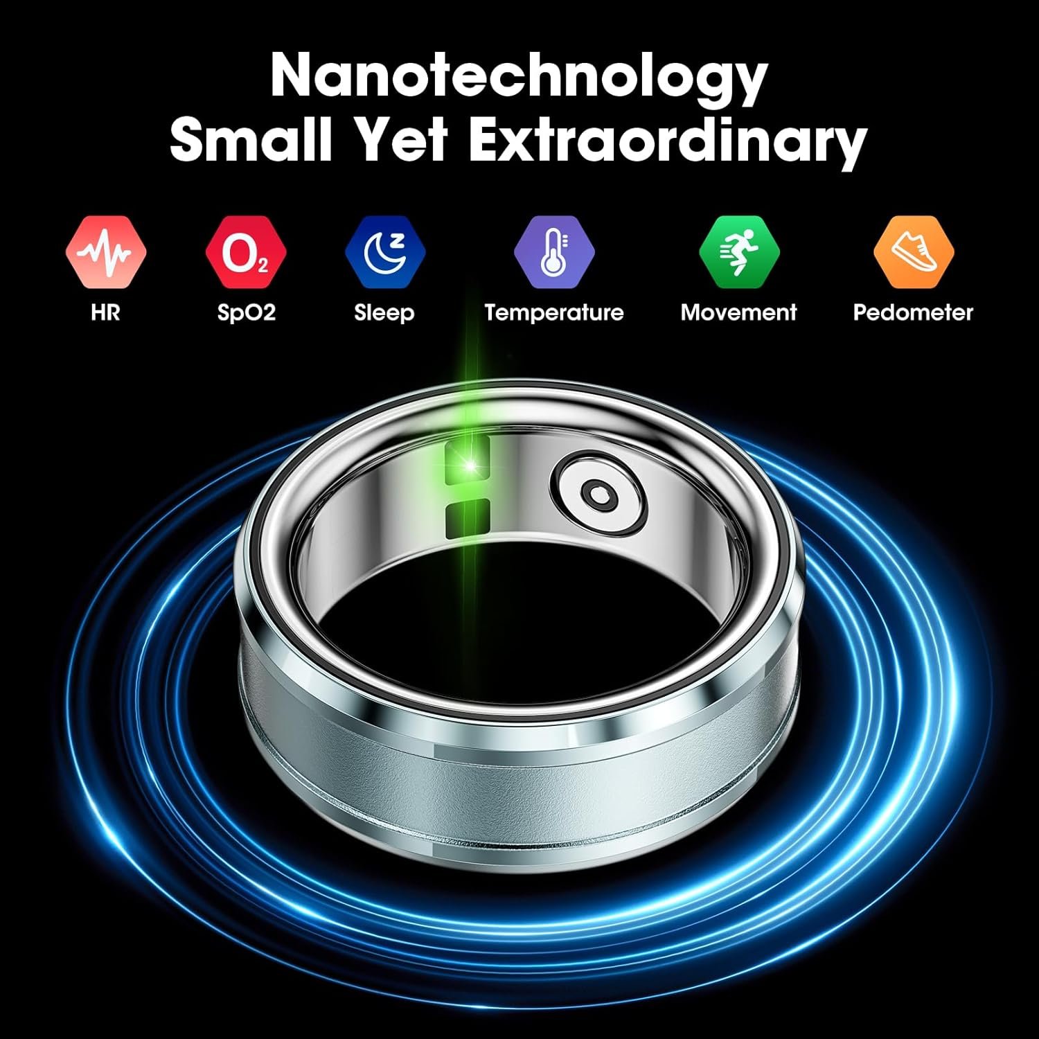 【Exercise Tracker on Finger】This fitness tracking ring will automatically let you know your exercise status, such as steps, distance, calories, etc., through the exercise monitoring function, with multiple exercise modes, you can easily view everything on the APP Sports data. It is easy and hassle-free to use. The compact and lightweight smart ring is a good choice for you to go out for walks, parties, and travels.