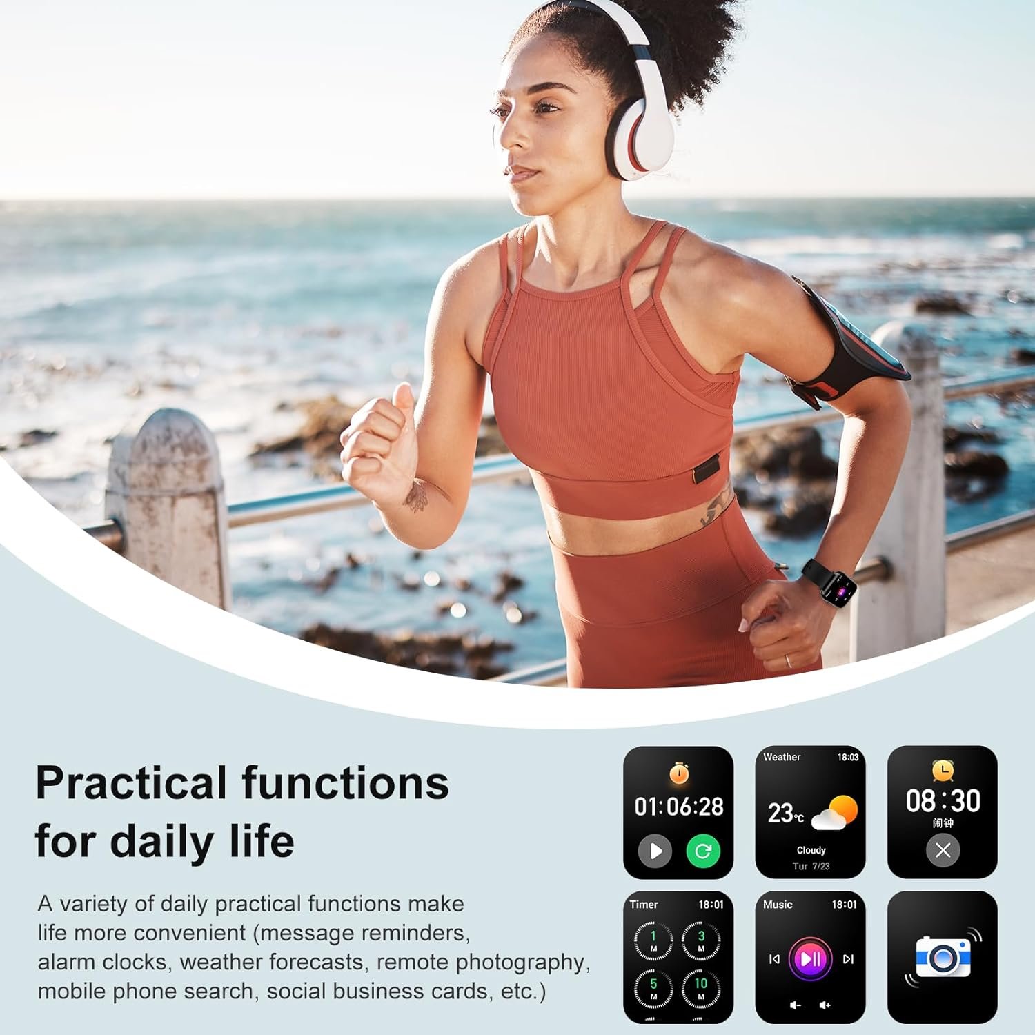 [Multifunctional Watch & Stable Bluetooth Connection] One-touch connection to the watch ensures a stable connection, keeping you always connected to the world. Built-in high-end speaker and microphone deliver an ultimate calling experience, allowing you to enjoy your music journey to the fullest. Whether you are driving, exercising, or multitasking, stay connected anytime, anywhere. SMS reminders and real-time app notifications keep you updated on the latest information, ensuring you never miss any important messages. Other practical features such as alarm clock, weather forecast, stopwatch, timer, and find phone provide convenient user experience.