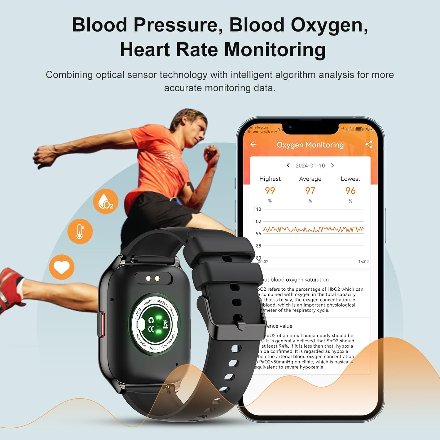 Prepare to be captivated by the remarkable display of our smartwatch. Boasting a generous 2.02 inches square screen, every detail comes to life with astonishing clarity. The high-resolution of 240*295 ensures vibrant visuals that are rich in color and depth. Whether you’re checking notifications, reading messages, or monitoring your fitness progress, the large and crystal-clear display offers an immersive experience, making every interaction a visual feast.