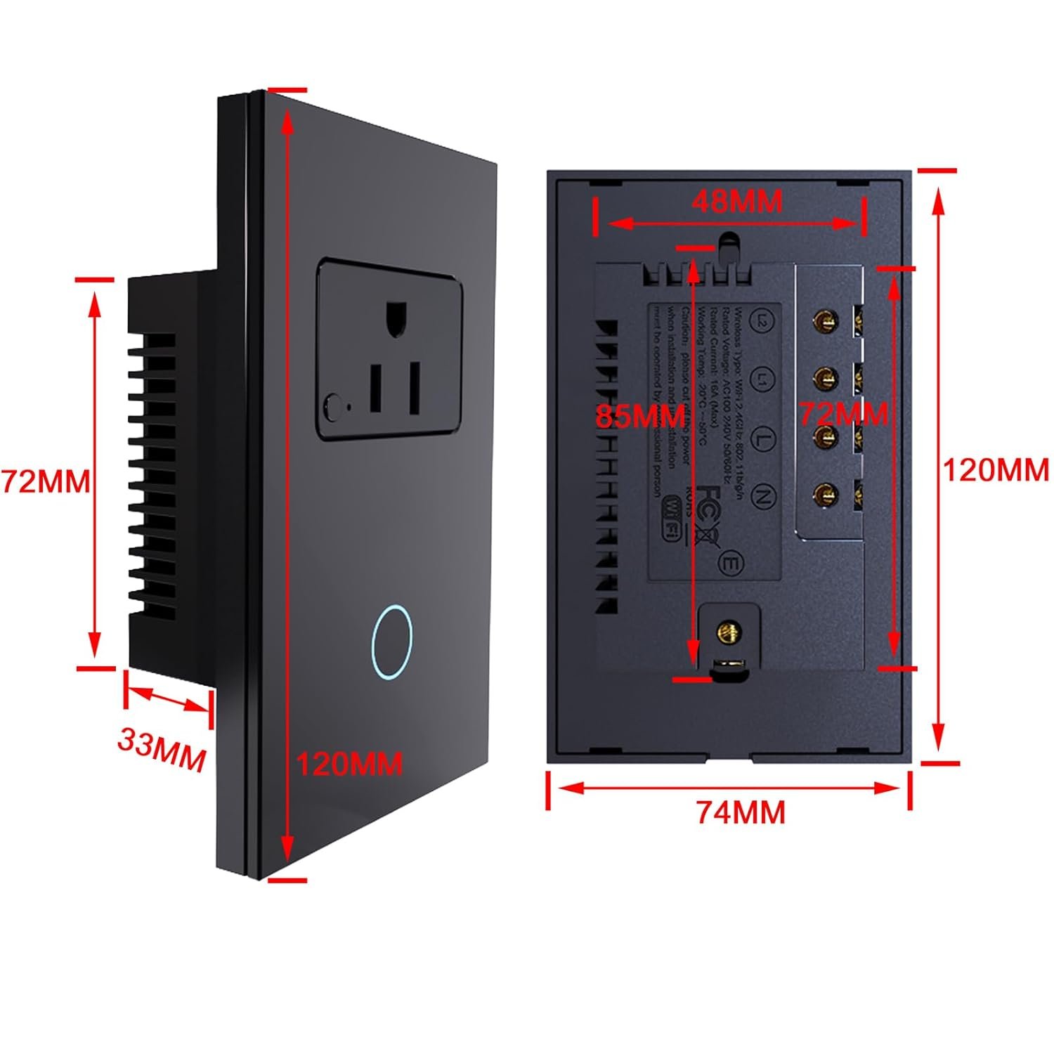This WiFi wall touch switch is perfectly compatible with Alexa and Google Assistant, simple voice control frees up your hands when you walk through the kitchen door with a full load of groceries, sleep in a cozy bed, cuddle your baby, etc.