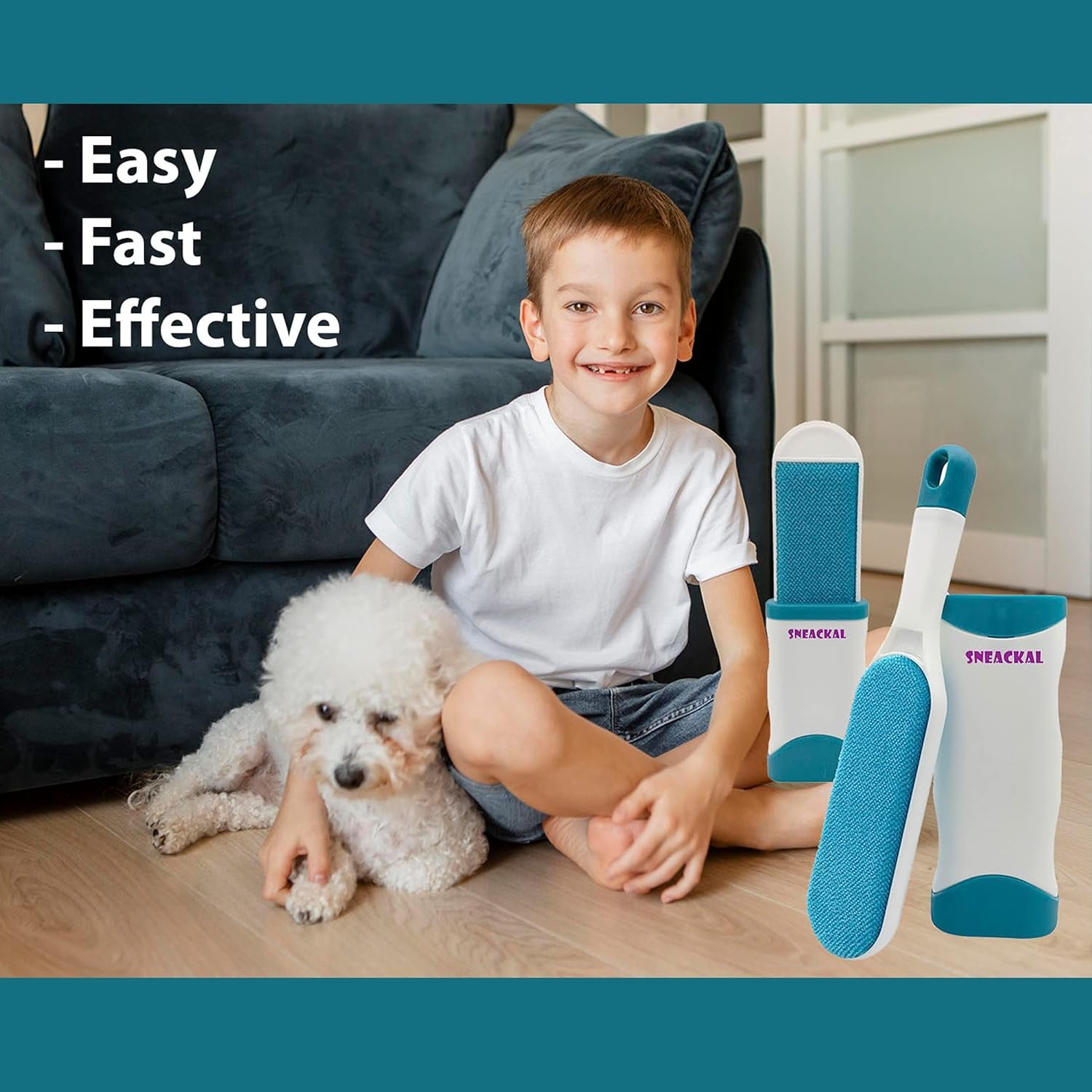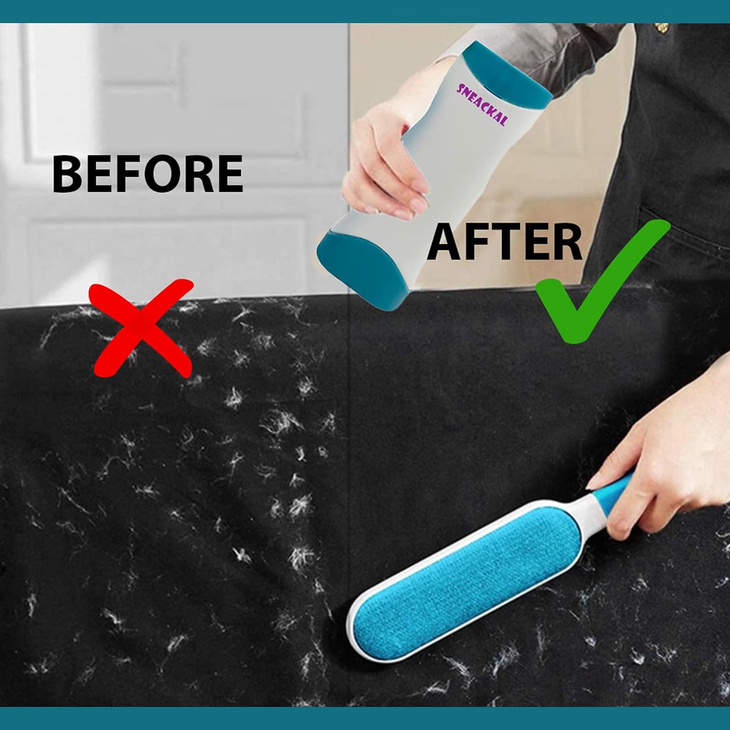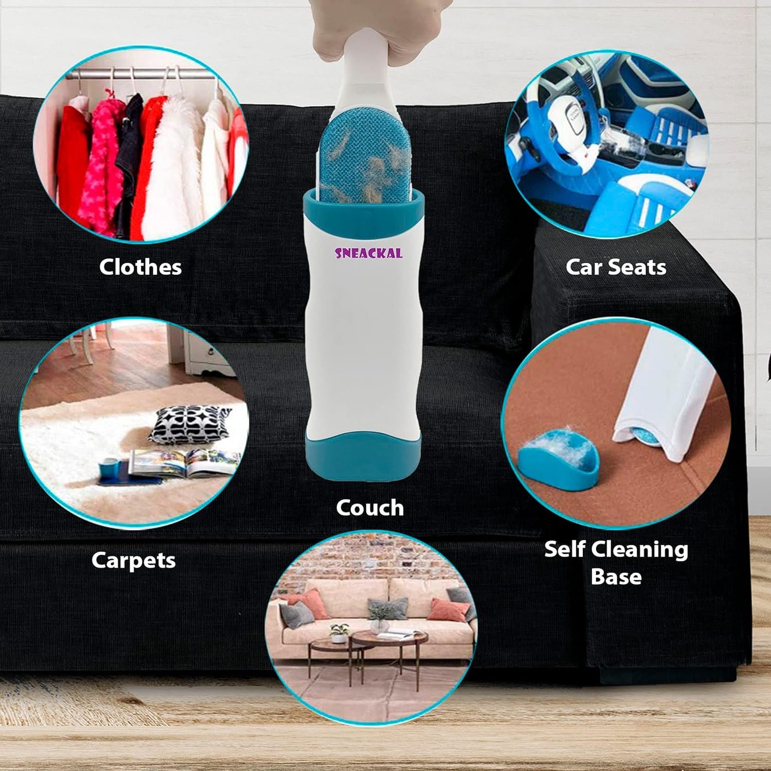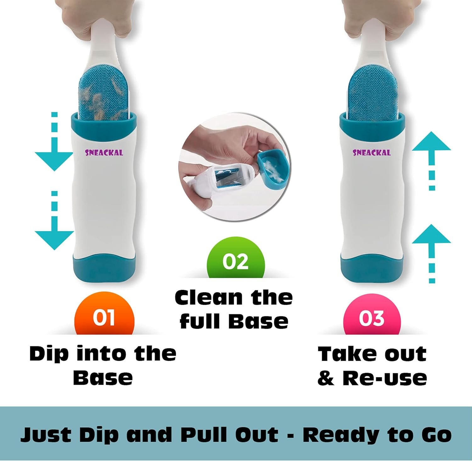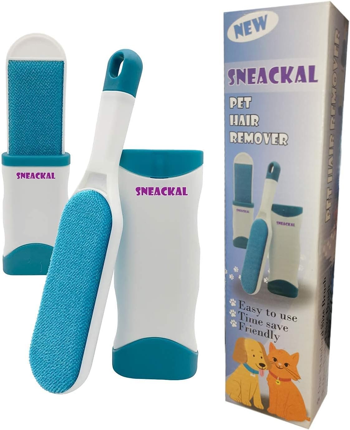 Sneackal Pet Hair Remover is suitable for every day use and will completely remove any pet fur around your home or/and car. Great dog hair remover for couch, car, carpet, clothes. Comfortable and Easy for usiing. Effective and suitable for every day use – remover fo – pet hair, fluff, lint. Reusable lint remover with self cleaning base.No Refills Needed and No Waste New and Upgraded Reusable Dog Fur Remover How to Use the Sneackal Pet Hair Remover Brush 1. Move your arm in the direction of the white arrow while using this product. Don’t Move Back. Moving in the wrong direction will make this product ineffective.2. When the brush is fully covered, dip it inside the base, it will be clean and ready to catch more hair when you take out the brush from the base.3. When the base is full, simply take off the cap and empty the content into a trash can.The Sneackal Pet Hair Remover Brush is better than rollers – No reffils. Great Pet Accessory Fur Remover is Perfect for Clothes, Furniture, Couch, Carpets, Linens, Pillows, Fabric, Bed, Clothing, Car Seats The Sneackal Pet Hair Remover Package Includes:One Travel Size Brush One Standard Size Brush One Self-Cleaning Base If you have some cute, hairy, fluffy pets at home New Sneackal Pet Hair Remover Brush will take care of not getting in a mess!Be prepared