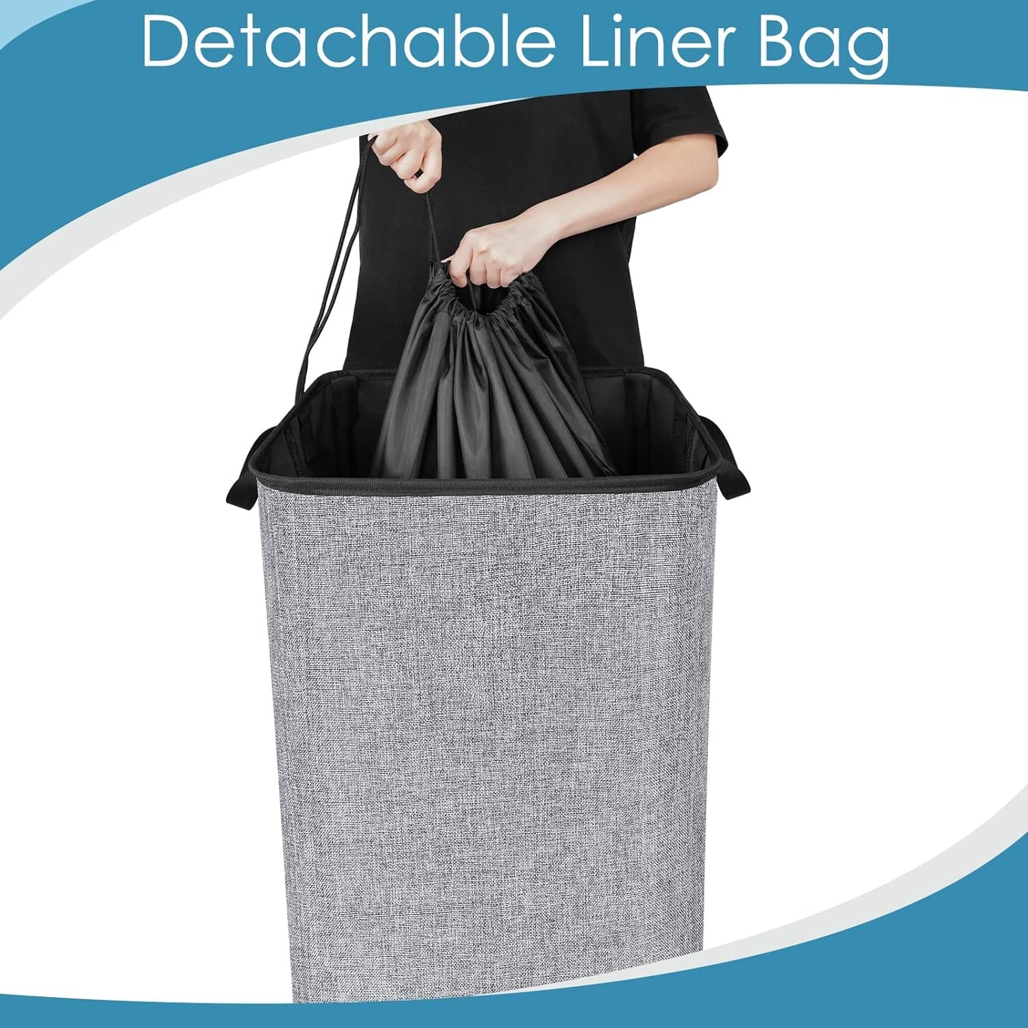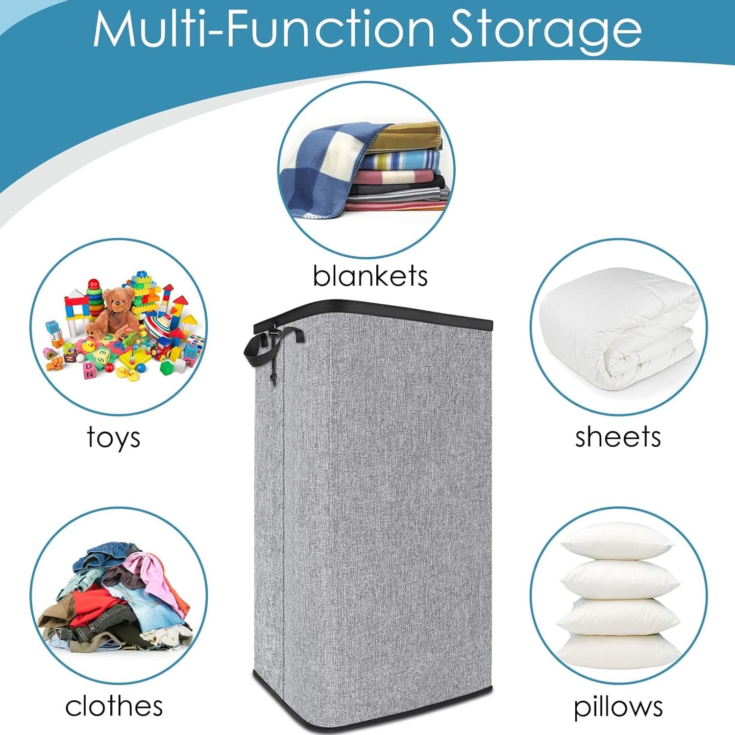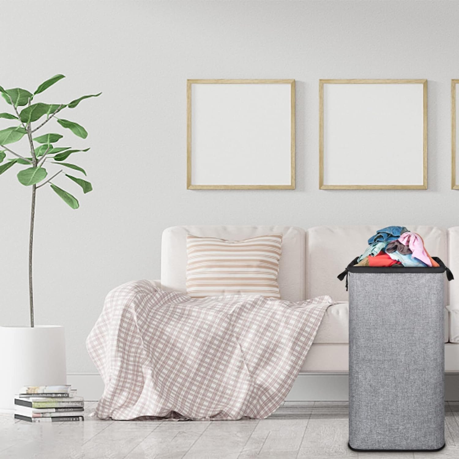🩳FREESTANDING STRUCTURE: This laundry basket is 30.9″ tall heavy-duty imitation linen fabric, easy to assemble, and has 4 strong fiber rods and a metal-wired frame to support the sturdy structure. The laundry basket will maintain its shape without collapsing, and stands up well even if it’s empty. Large laundry baskets are the best gift for families, mothers, fathers, sons, daughters, friends, etc.