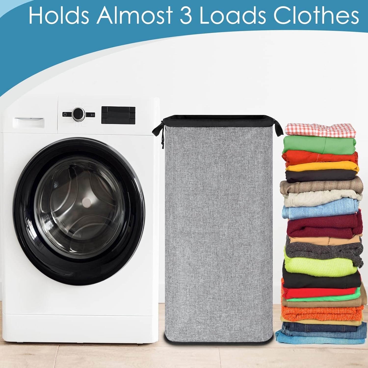 🥼STURDY NYLON HANDLE: Equipped with two sturdy nylon handles, you can transport dirty clothes effortlessly even when it’s full. The handle is tightly stitched to carry, even heavy loads with no tearing, suitable for the elderly, and pregnant women to easily carry contents up and down stairs or in a laundromat.