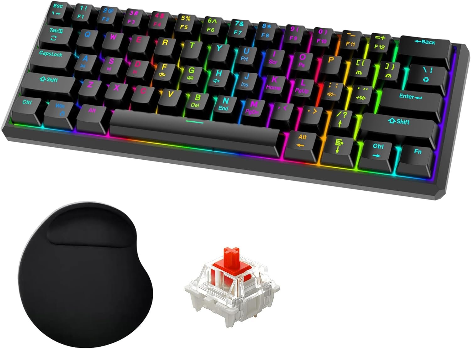 【Comfortable Mechanical Red Switches】Red switch keyboard is popular with gamers and typer because these switches respond faster and they require less force to hold down a button. Sensitive.All standard 61 keys are no conflict.