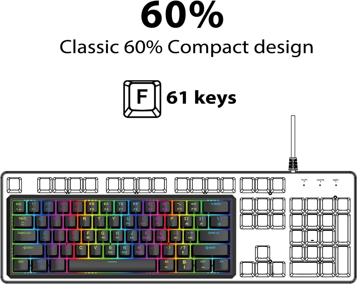 【Classic 60% Small Keyboard】This classic 60 percent mechanical keyboard is ultra-compact. Its small size helps you save space for gaming or work. Its detachable USB-C cable makes it more convenient to carry.