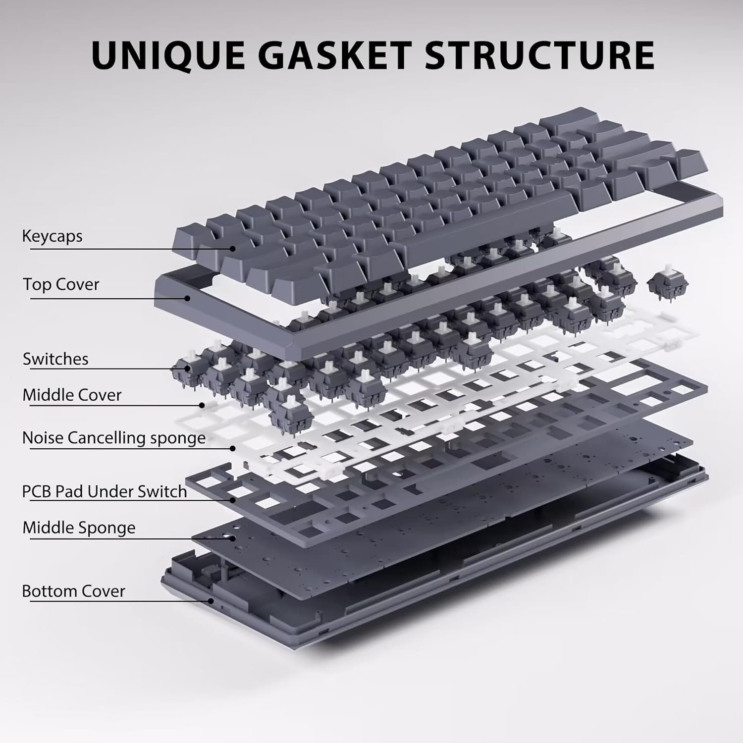【Gasket Mechanical Keyboard】Snpurdiri team adapts Gasket structure to upgrade the 60 mechanical keyboard, which not only reduces noise and enhances stability, but also improves the effect of RGB lighting.Various System Compatibility.