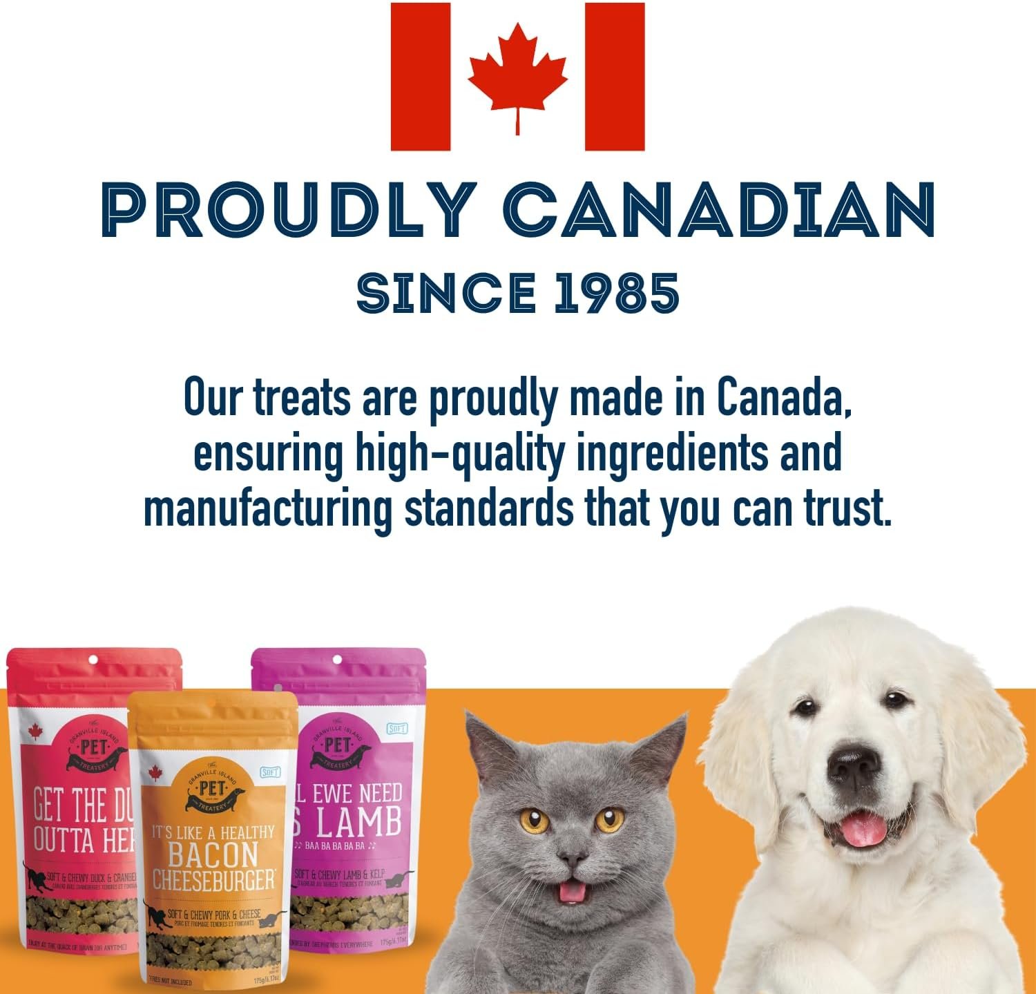 PURRRFECT TASTE & TEXTURE FOR EITHER CATS OR DOGS – Our treats have the most tender and chewy texture that cats and dogs adore! As a premium, unbeatable source of protein, Granville Island Pet Treatery is setting a new standard for cat treats and dog treats. We ensure that your pets experience the finest protein source available, making our treats ideal for those seeking high-quality treats for pets of all ages. Discover the joy of treating your beloved companions to the best.