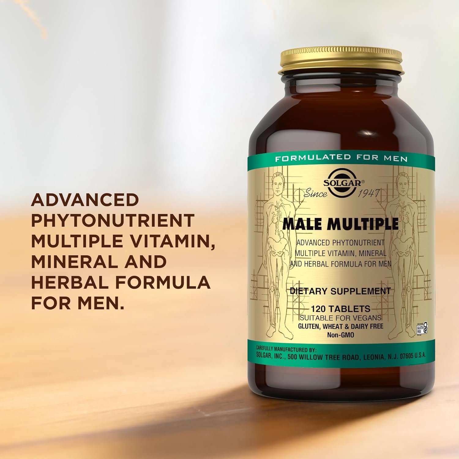 Gluten, Wheat & Dairy Free; Solgar Male Multiple is vegan, and free of: gluten, wheat, yeast, sugar, artificial flavors, and artificial preservatives.
