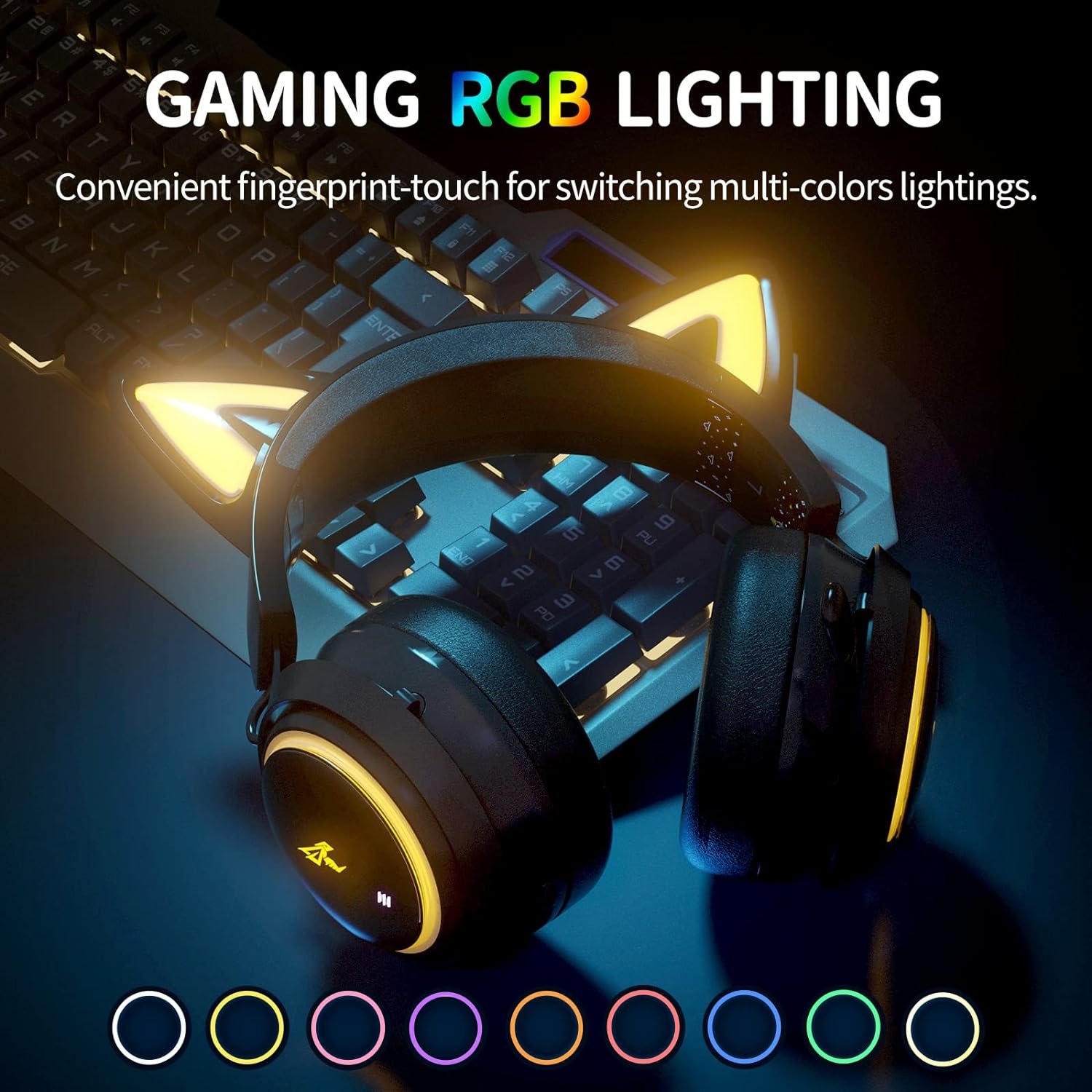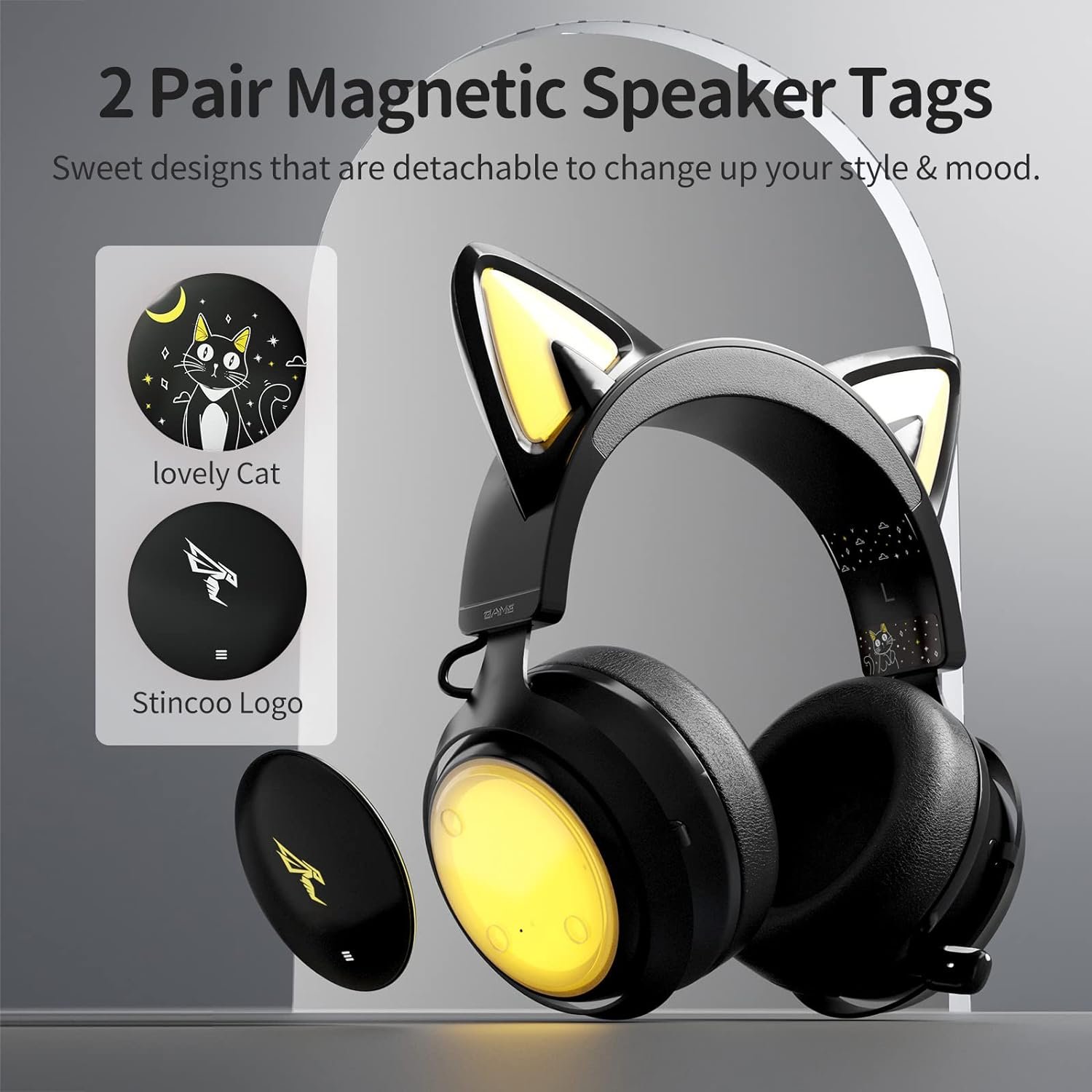 【8 RGB Lighting Effect & Magnetic Speaker Tags】Cute cat ear headphones has 8 RGB lighting effects and one multi-color cycling mode, just press the light touch key to switch the color you like. 2 pair magnetic speaker tags are detachable to change up you style.