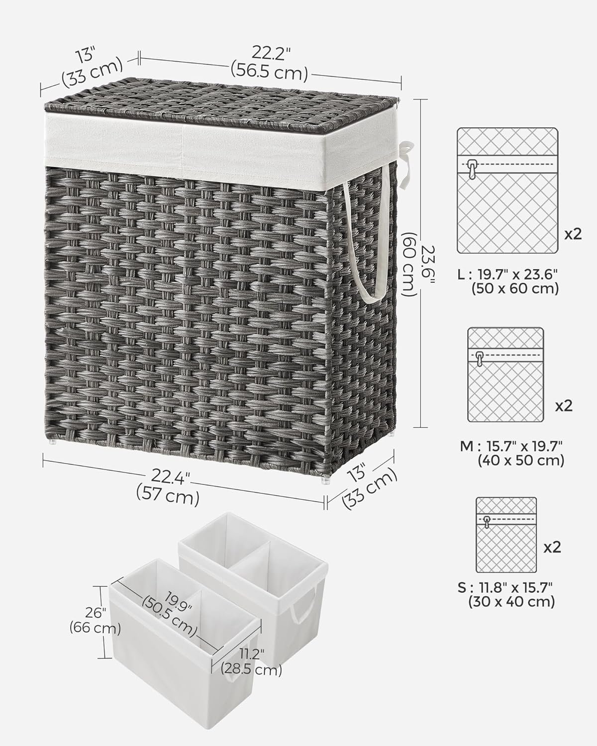 [2 Washable Liners, Includes 1 Spare] This laundry hamper comes with an extra liner so you can switch it out while one is taken to the laundry room or washer with the 2 handles. And both bags are washable to stay hygienic