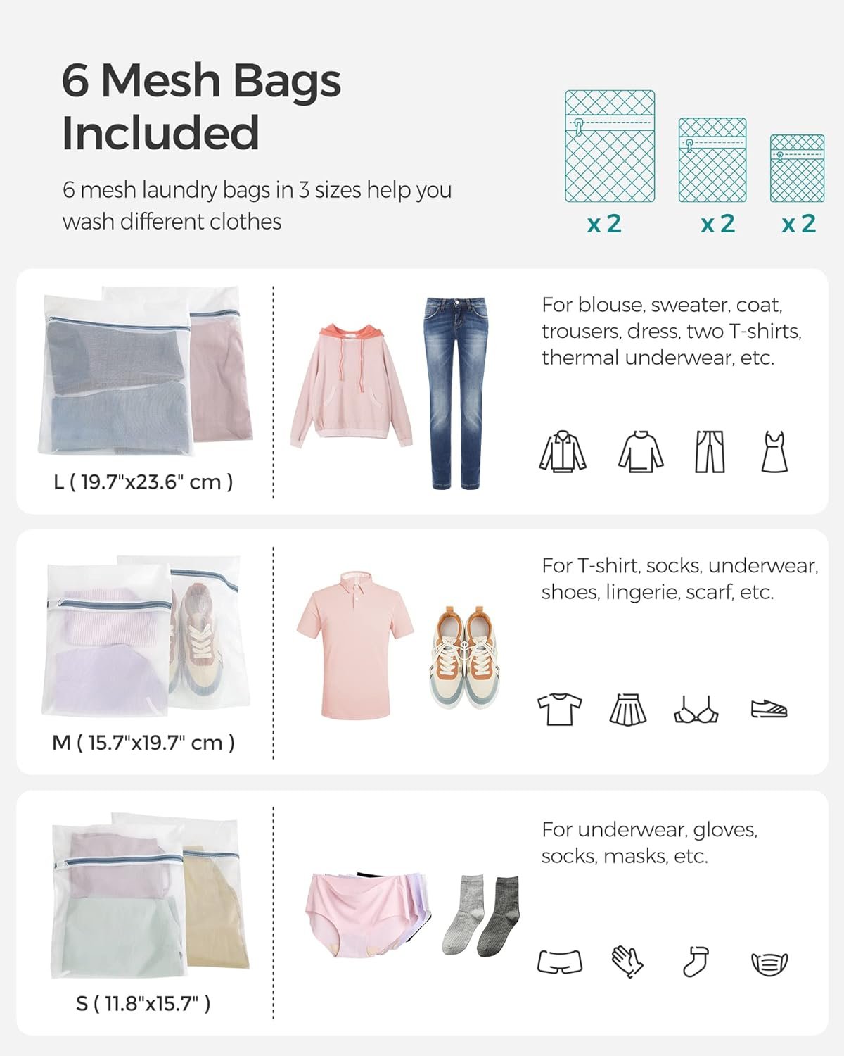 [6 Mesh Laundry Bags Provided] This hamper comes with 6 laundry bags to help you protect your underwear, socks, or other delicates when you wash them in the washing machine