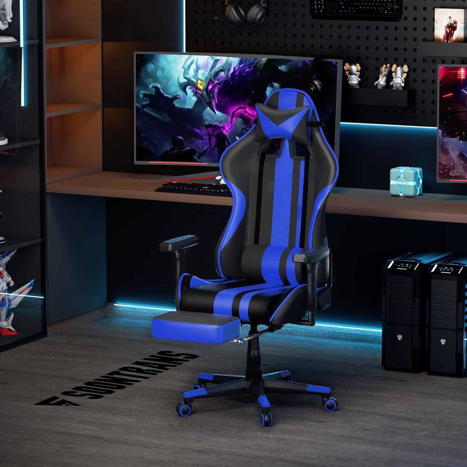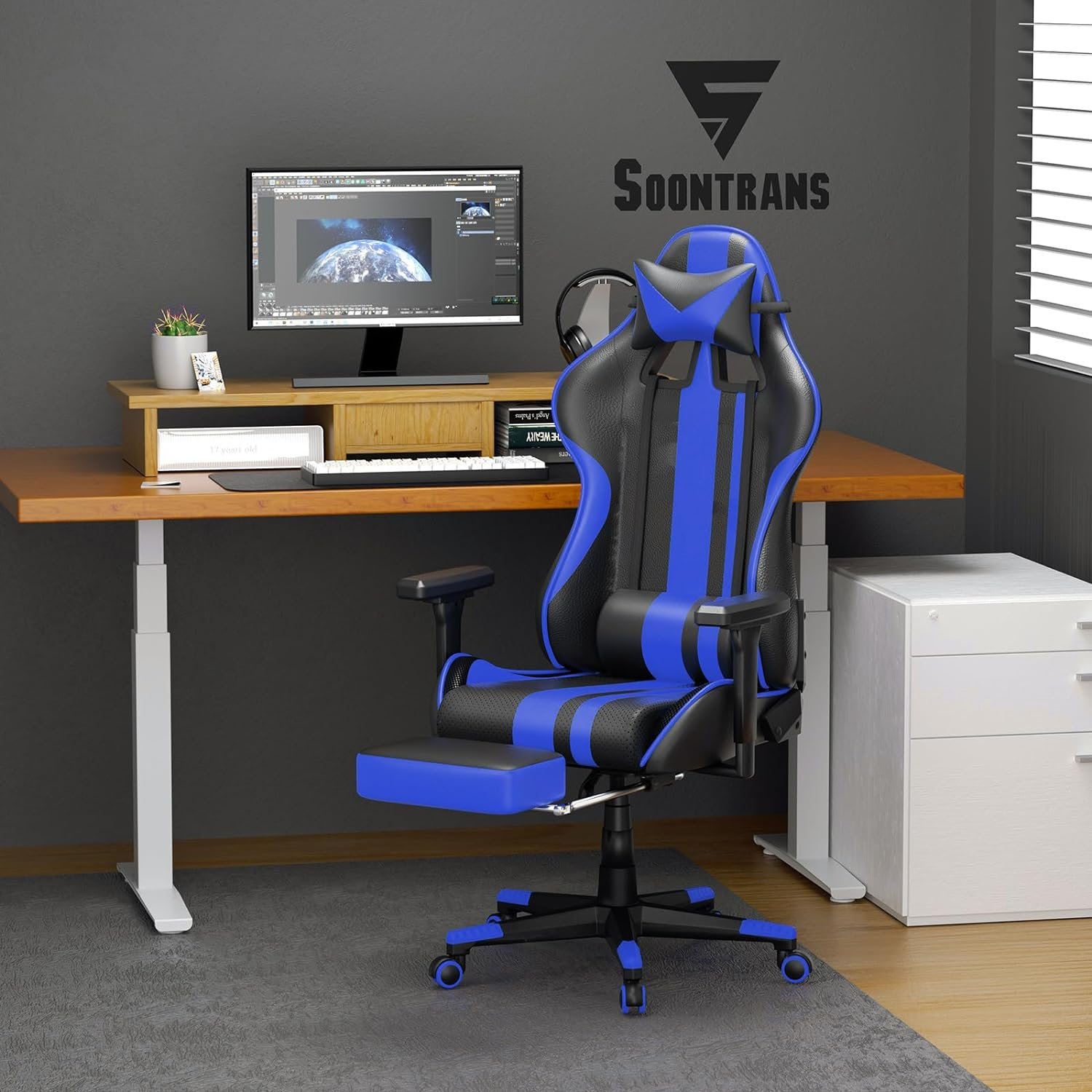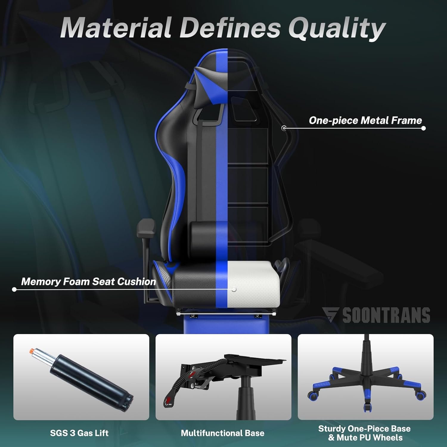 【Upgraded Materail】Soontrans gamer chair uses Safety SGS Class 3 hydraulic gas lift and heavy duty wheel base, is highly resistant to external forces and supports up to 300 lbs. Five 4-inch nylon casters can rotate 360 degrees to ensure smoothly moving.