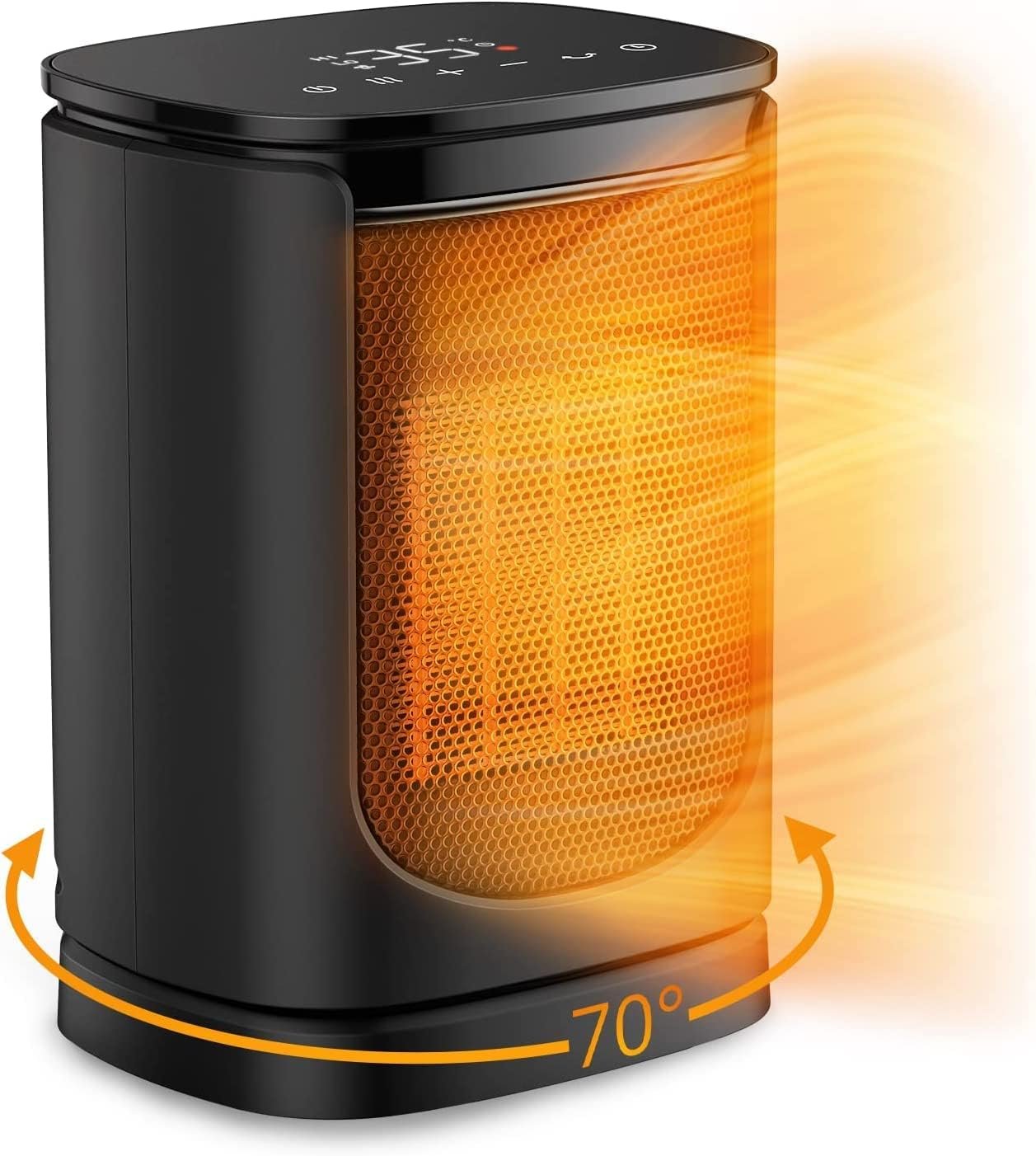 【70° OSCILLATING WARMTH】:Superior to other small room heaters, this 70° wide oscillating heater is equipped with an exclusive trackball system, which helps the heat cover more areas in a quiet and smooth way.