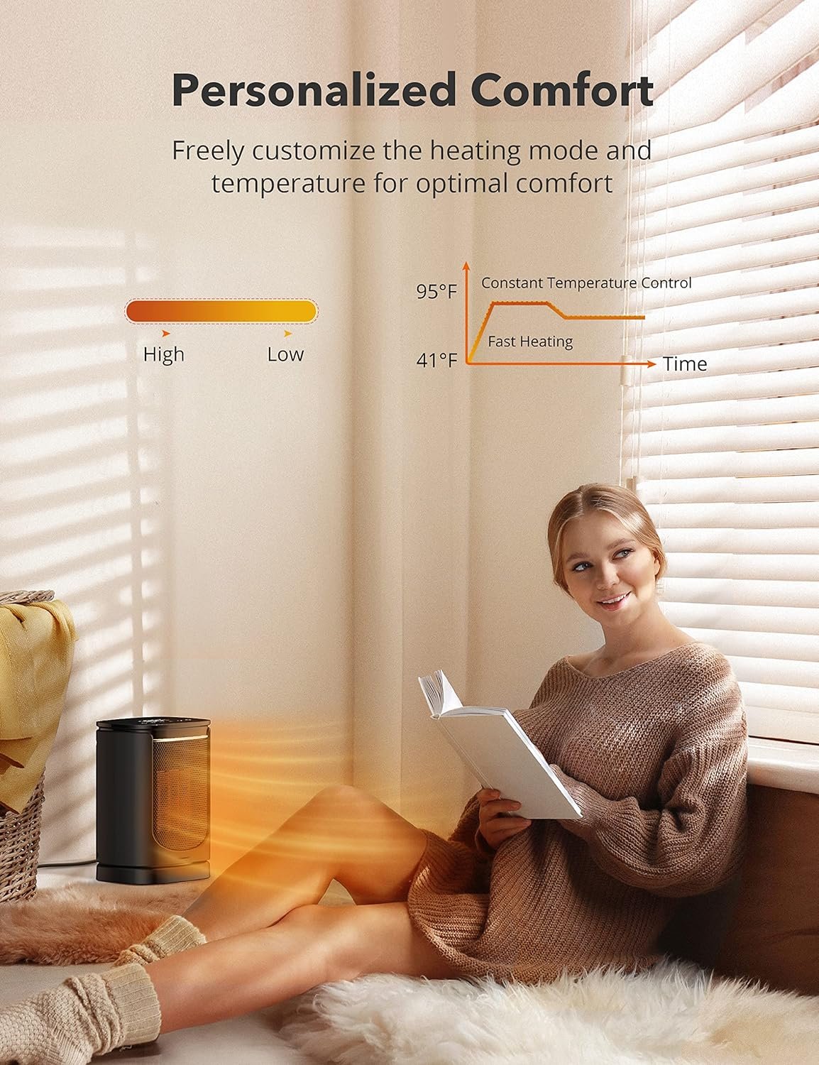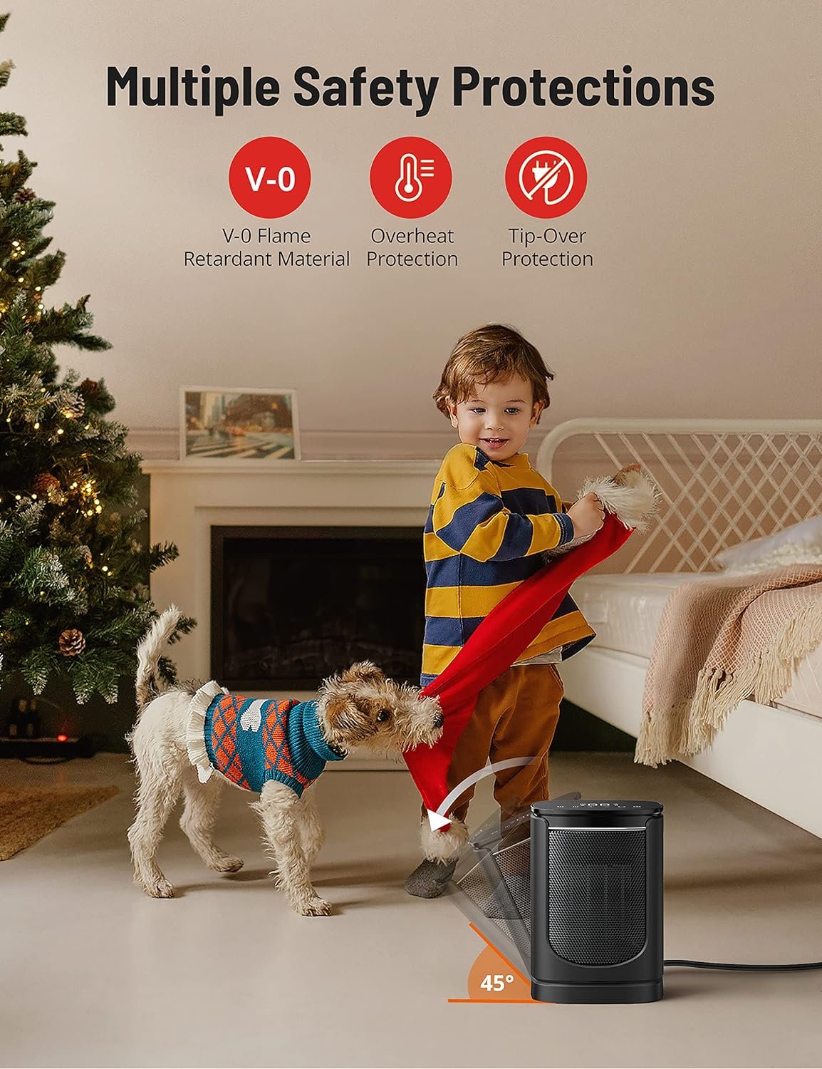 【SAFE AND RELIABLE】:Made of V0 flame retardant materials, this ETL-listed ceramic space heater for indoor use comes with multiple security features including overheating and tip-over protection, auto off after 24h without operation.