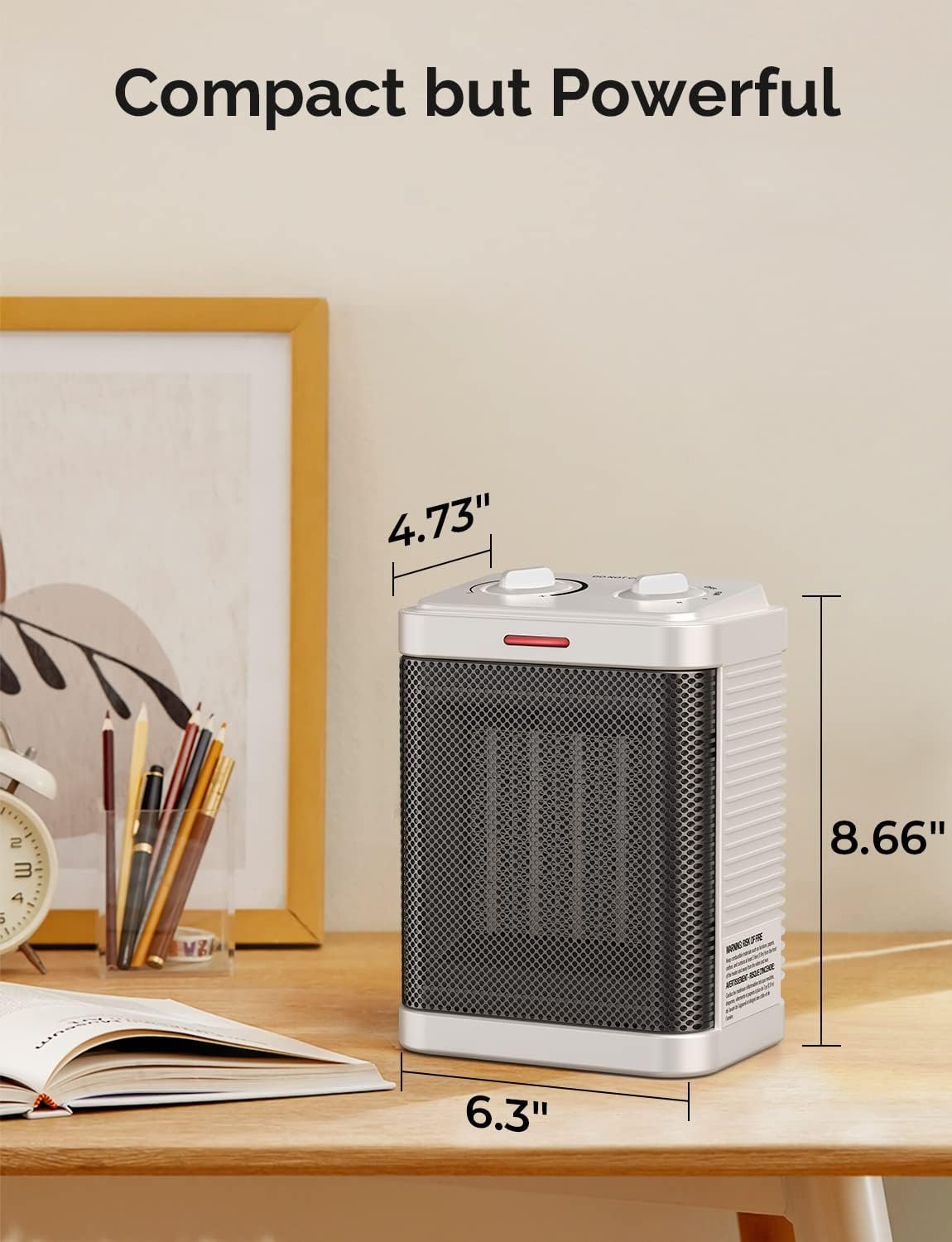 COMPACT SPACE SAVINGS: Dimensions are 6.3″ long, 4.73″ wide, 8.66″ high, and weigh 2.43 lbs. Small indoor electric heaters with two heating modes are an excellent design for homes, dorms, studios, and offices. Adopt the convection heating method to create a comfortable environment.
