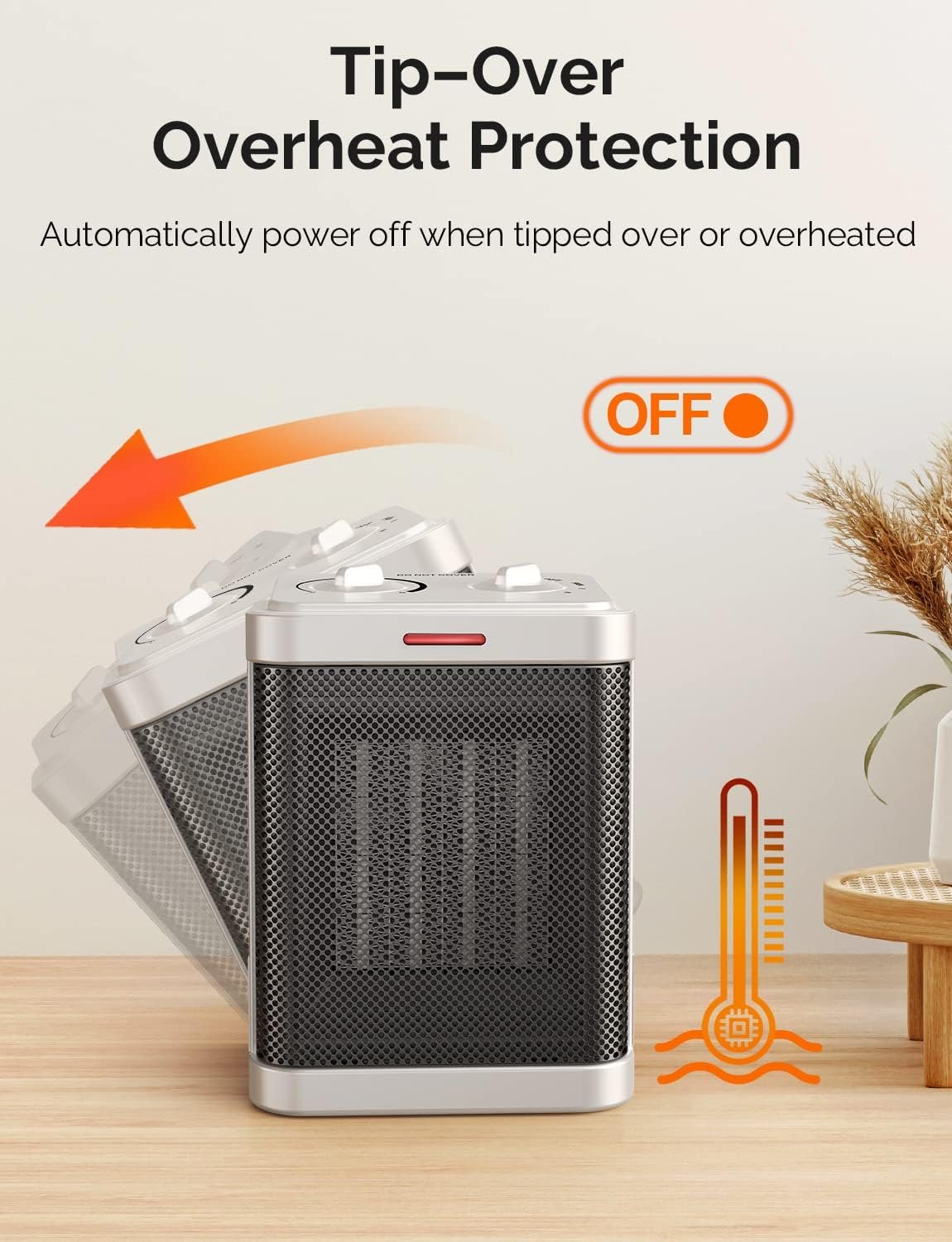 This ceramic heater with a safety guard automatically shuts down when tipped over.