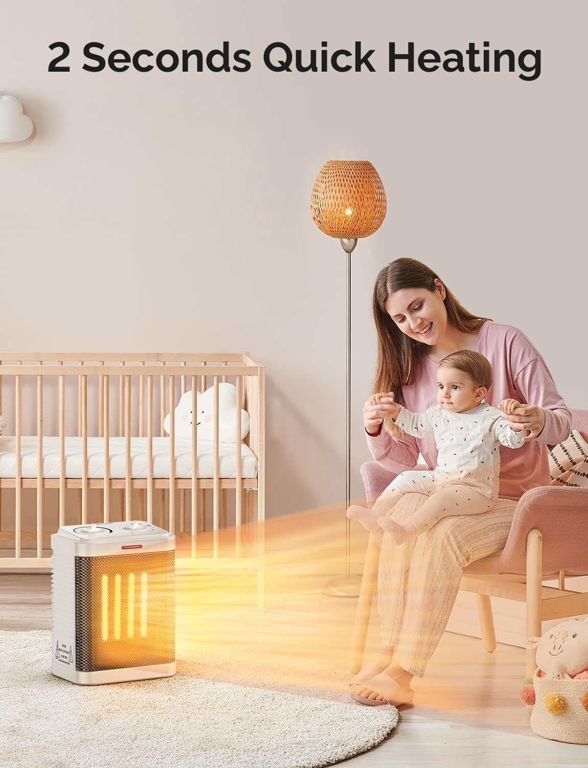 Personal space heater heats a room quickly. In just two seconds, you could feel the power of 1500 watts, keeping your home space warm and cozy.