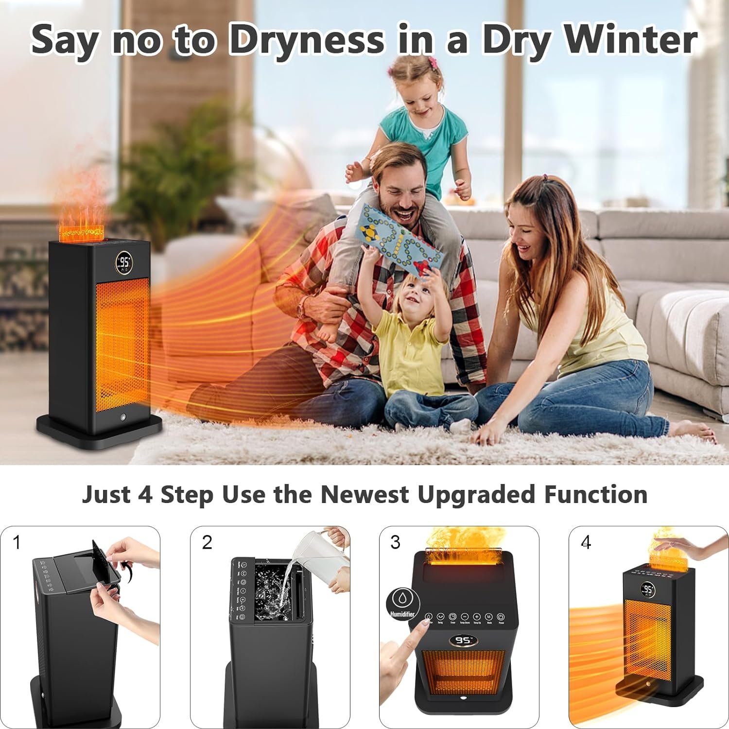 💧🔥【Unique Portable Heater with Humidifier】Say No to Dryness!Our space heater indoor adopt the upgraded safe humidifying technology can let you get warmth without drying.Just need to pour some water into the water tank and press the humidifier buttons,you can enjoy the humidifier function;Heaters for indoor use adopt the separate water tanks that separate the humidification system from the heating system to give you a absolute safety.Electric heater can provide you mist up to 6-8H.